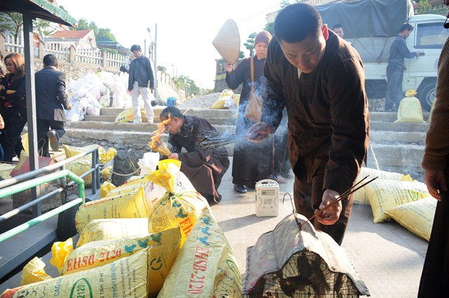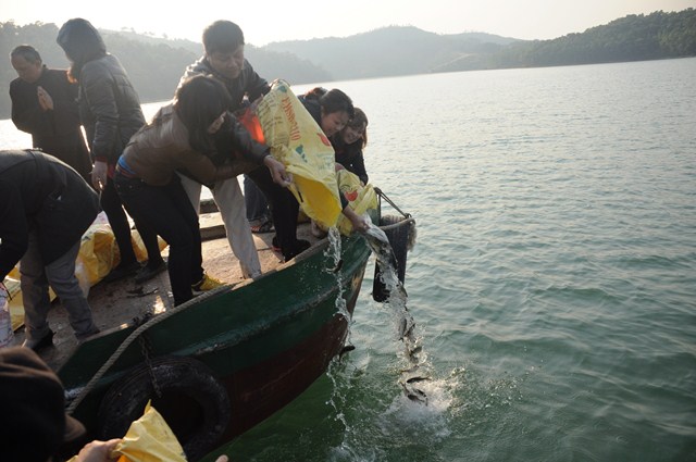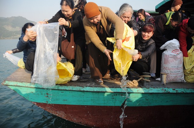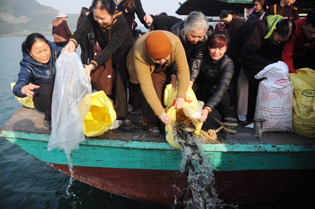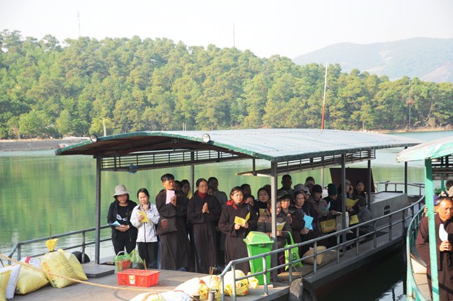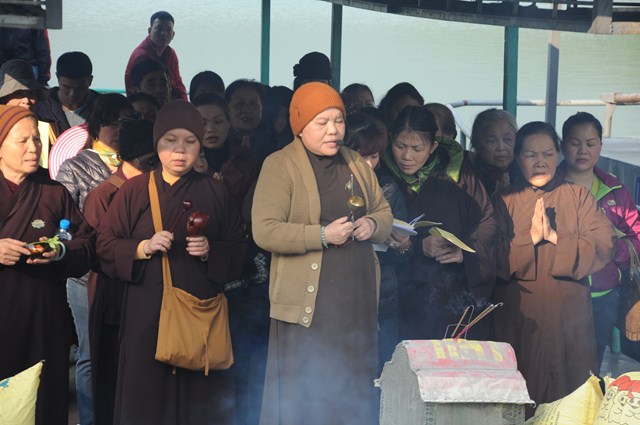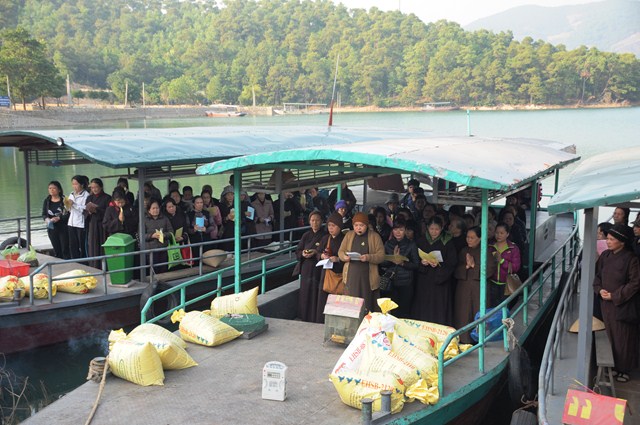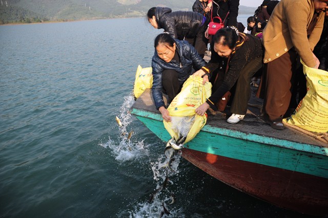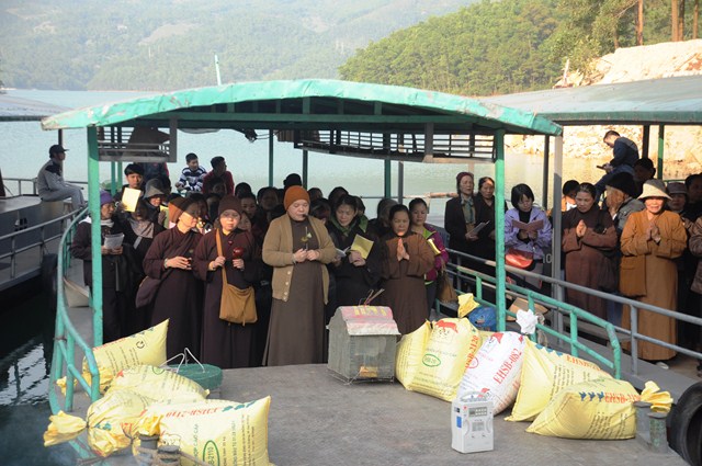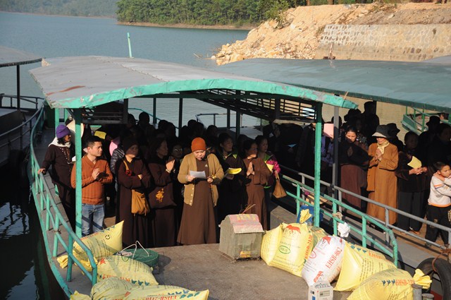 Sau đó, Ni Sư Thích Tâm Chính đã làm lễ quy y, sái tịnh, trì chú, niệm Phật, sám hối cho các chúng sinh, hơn 3 tạ cá đã được Chư tôn đức và các Phật tử thả xuống lòng hồ Yên lập để chúng được bơi lội, vùng vẫy tung tăng dưới nước và hơn 300 chú chim sẻ đã được thả về với thiên nhiên, về với bầu trời tự do của chúng hòa lẫn với tiếng niệm Phật nhất tâm, tha thiết.