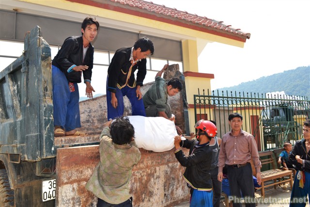 Đường vào xã Tà Tổng, huyện Mường Tè rất nhỏ hẹp, khó đi, 1 bên là núi, 1 bên là vực rất nguy hiểm. Xe tải 5 tấn chở hàng của đoàn chúng tôi đã không thể vào được xã. Xe đi đến gần xã thì không thể vào được vì đường đi rất nhỏ nên xe của chúng tôi đã phải quay trở lại trung tâm huyện Mường Tè thuê xe chuyển tải sang xe tải có tải trọng nhỏ hơn để có thể đưa hàng vào tận xã cho bà con.