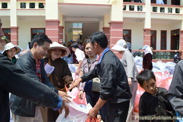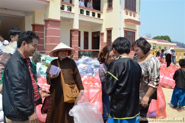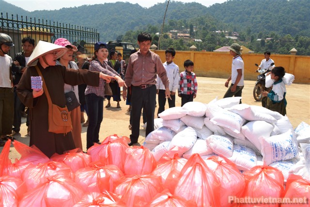 Trải qua chặng đường gần 900 cây số, chiếm 2/3 quãng đường là đường đồi núi, đường đi nhỏ, hẹp, quanh co, khúc khuỷu, khó đi và sau gần 26 tiếng đồng hồ ngồi trên xe ô tô, có lúc tốc độ di chuyển tối đa chỉ được 10-15km/giờ. Chư Ni và Phật tử chùa Vẽ đã có mặt tại xã Tà Tổng, huyện Mường Tè, tỉnh Lai Châu để phát 200 suất quà, mỗi suất quà trị giá 500 nghìn đồng cho 150 hộ dân và các trường mẫu giáo, tiểu học, trung học tại xã Tà Tổng, huyện Mường Tè, tỉnh Lai Châu.
