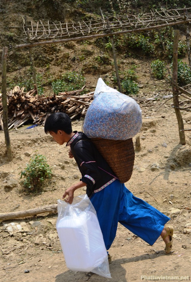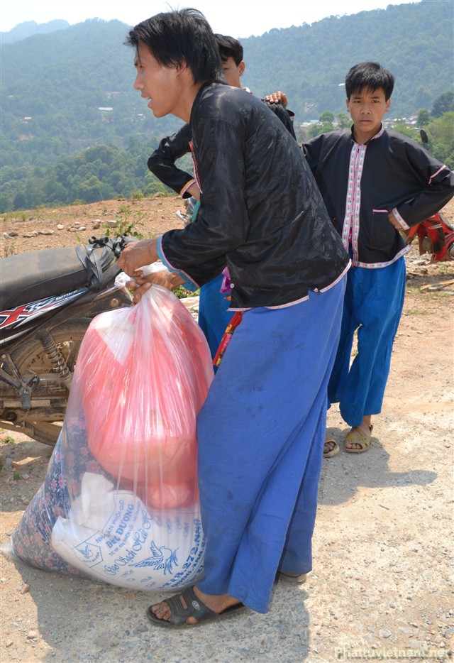 Sau đó đoàn chúng tôi lại tiếp tục di chuyển 15 cây số đường đồi núi nữa để sang xã Bum Tở, huyện Mường Tè, tỉnh Lai Châu và phát 30 suất quà nữa cho bà con trong xã.