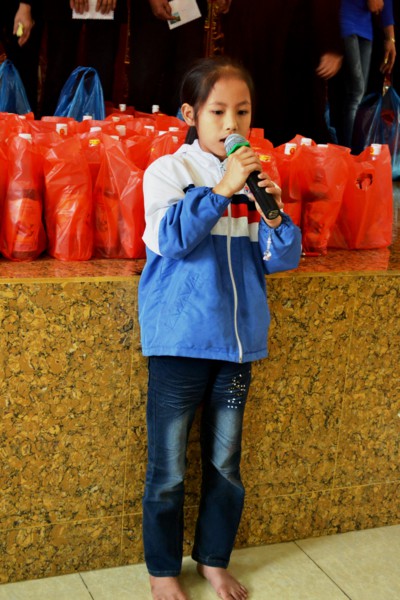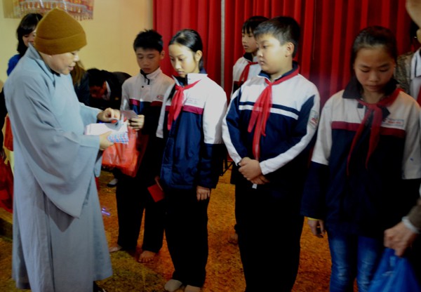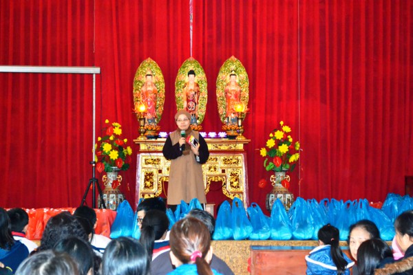 Trong buổi lễ phát quà, Ni Sư cũng khuyên nhủ các vị phụ huynh: Nếu gia đình nào có hoàn cảnh quá khó khăn mà con em của mình không có đủ điều kiện để đến trường đi học được thì các vị phụ huynh hãy cứ mạnh dạn đề đạt với nhà chùa để nhà chùa sẽ tạo điều kiện giúp đỡ các em như cung cấp sách vở, đồ dùng học tập, quần áo để các em được cắp sách tới trường.