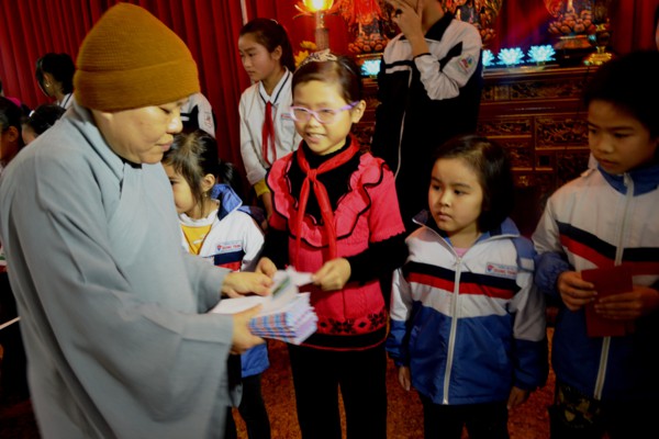 Như thường lệ, cứ mỗi độ tết đến, xuân về là Ni Sư Thích Tâm Chính – Trưởng ban từ thiện Thành hội PG TP. Hải Phòng, Chánh Ban đại diện PG quận Hải An, kiêm trụ trì chùa Vẽ – Hải Phòng, Chư Ni trong chốn trụ xứ,  các Phật tử cùng các mệnh thường quân lại mang niềm vui đến cho các em học sinh có hoàn cảnh khó khăn để các em đón 1 cái tết thật ấm cúng, xóa bớt đi nỗi tủi thân, mặc cảm so với các bạn cùng trang lứa khác.