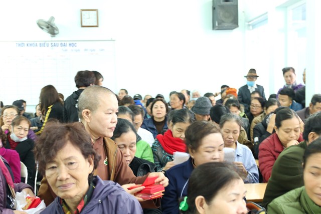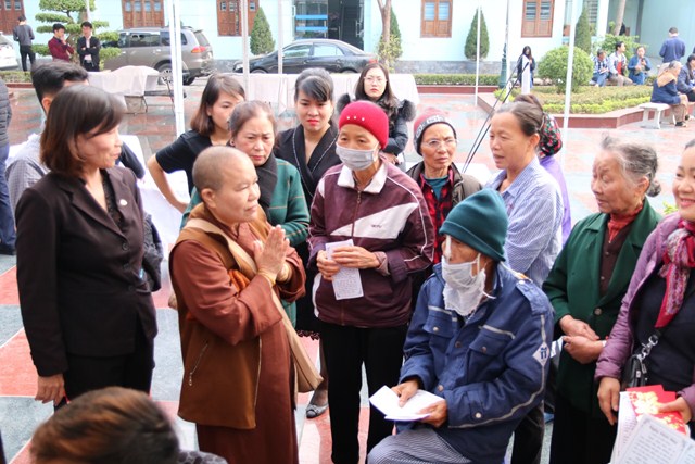 Trước khi kết thúc chương trình, Ni sư Thích Tâm Chính đã cùng đại diện các Phật tử, các nhà hảo tâm, các mạnh thường quân đã trao 320 phần quà tết cho 320 bệnh nhân khoa Thận nhân tạo với tổng số tiền là gần 100 triệu đồng.