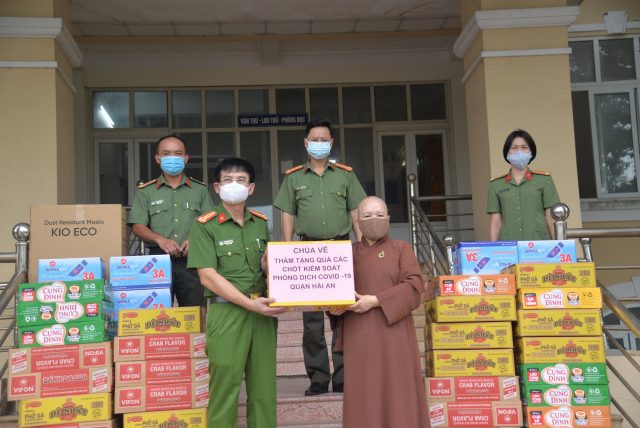 Trước tình hình dịch bệnh Covid-19 đang diễn biến hết sức phức tạp và khó lường tại các tỉnh thành trên cả nước, Hải Phòng là thành phố trực thuộc Trung Ương, dịch bệnh cơ bản đã được kiểm soát. Tuy nhiên, các tỉnh thành lân cận vẫn xuất hiện rải rác một số ca dương tính với SARs- Cov-2, nên sáng nay 16/08/2021 ( nhằm ngày 9/07 năm Tân Sửu) Ni sư Thích Tâm Chính – Trưởng Ban từ thiện xã hội GHPGVN thành phố Hải Phòng, trụ chùa chùa Vẽ ( Hoa Linh Cổ Tự), phường Đông Hải 1, quận Hải An, thành phố Hải Phòng đã tới Trụ sở Công an quận Hải An trao tặng quà cho đại diện các chốt kiểm soát dịch bệnh Covid-19 trên địa bàn quận.