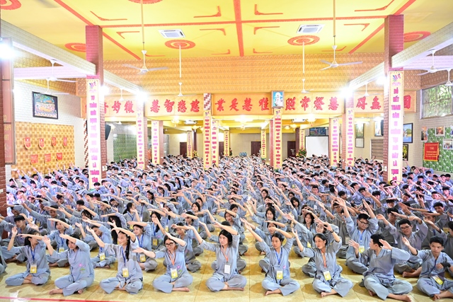 Hơn 600 khóa sinh đồng diễn vũ khúc: ” Khóa tu mùa hè Bồ Đề Tâm” do ca nhạc sỹ Phật tử Quý Luân sáng tác dành riêng cho khóa tu mùa hè tại chùa Vẽ