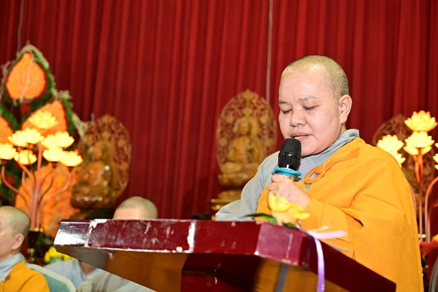 Ni sư Thích Tâm Chính – Trưởng BTC phát biểu khai mạc khóa tu