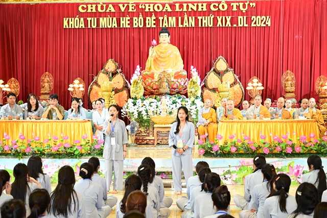 Phát biểu khai mạc, Ni sư Thích Tâm Chính – Trưởng BTC khóa tu khẳng định vai trò, mục đích của việc tổ chức khóa tu mùa hè cho các bạn trẻ, nhằm tạo cho các em một sân chơi bổ ích, để các em nuôi dưỡng tâm từ bi , hạnh hỷ xả, hạnh lắng nghe với mục tiêu: “ trải nghiệm tu học mà vui chơi bổ ích, vui chơi bổ ích mà trải nghiệm tu học” , đồng thời tạo thuận duyên cho các em được giao lưu, chia sẻ, tiếp cận kỹ năng sống, để các em hiểu biết và hiếu nghĩa với ông bà, cha mẹ , biết nghe lời thầy cô, học hành chăm chỉ, luôn biết yêu thương, chia sẻ với mọi người xung quanh, dần hoàn thiện bản thân, hoàn thiện nhân cách, góp phần xây dựng nếp sống văn hóa lành mạnh, tư duy tích cực, nghĩ điều thiện, nói điều thiện, làm việc thiện, đem lại lợi ích thiết thực cho tự thân. Từ đó nhân rộng ra làm lợi ích cho cộng đồng và cho xã hội. Ngoài ra, đây cũng là cơ hội tốt, duyên lành để giới trẻ có môi trường tốt gieo duyên, tiếp cận với Phật Pháp và hành trì lời dạy của Đức Phật xây dựng thiện nghiệp cho tương lai. Khóa tu sẽ được diễn ra trong suốt thời gian 5 ngày liên tục, các khóa sinh sẽ ăn, ngủ nghỉ tại chùa từ ngày 22/08 đến hết ngày 26/08/2024.