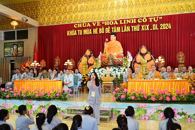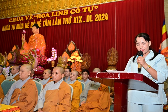 Dịp này, Ni sư trưởng Ban tổ chức khóa tu cũng đã tán thán công đức của Hội đồng, Ban Giám hiệu nhà trường đã tổ chức cho các em về chùa tham dự khóa tu, chúc các em khóa sinh có những ngày hè tu học ý nghĩa, bổ ích, lý thú và gặt hái được nhiều kiến thức sau khi tham dự khóa tu.