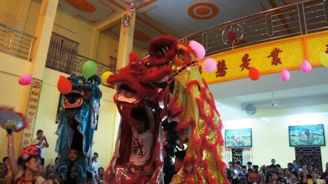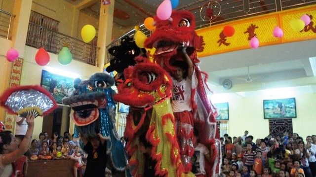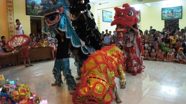 Và giây phút mà các em mong đợi đã đến, trước khi kết thúc chương trình đêm hội trăng rằm năm nay, các em thiếu nhi đã được xem chương trình múa lân hết sức đặc sắc và ấn tượng do các em trong đoàn múa Lân quận Hồng Bàng, Hải Phòng thể hiện.