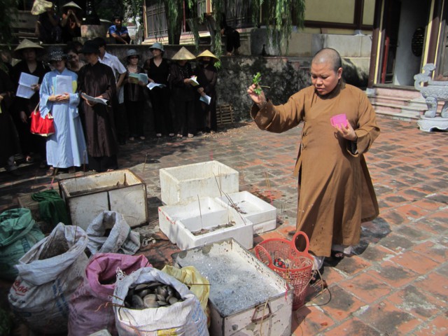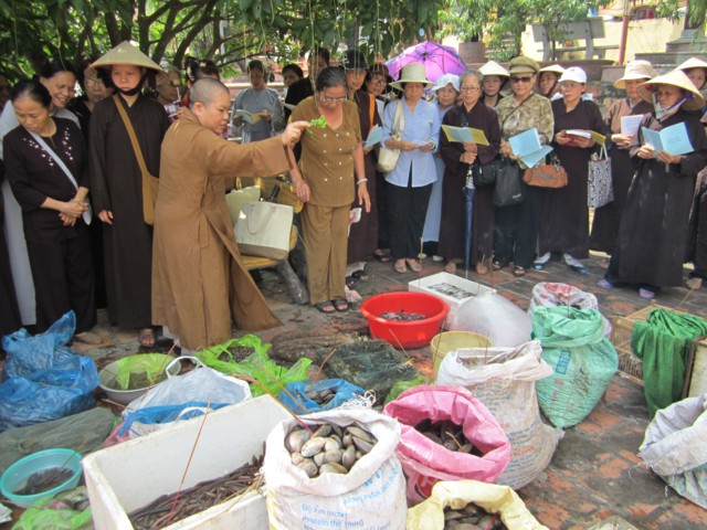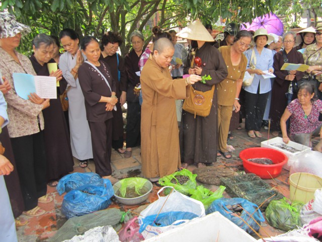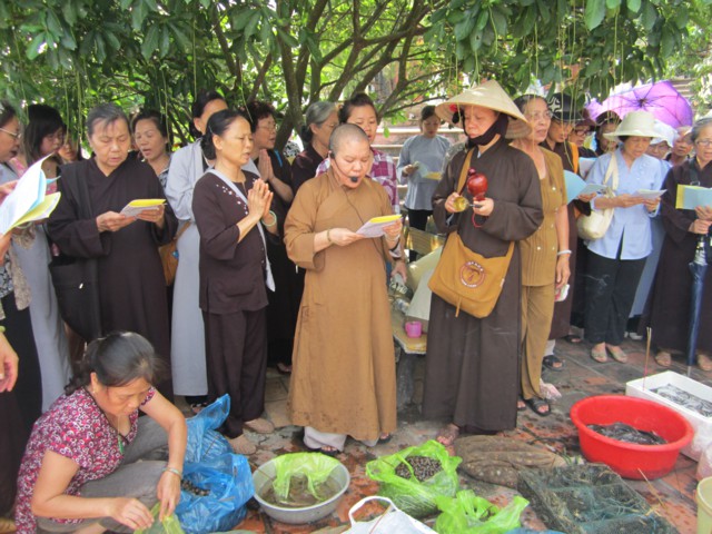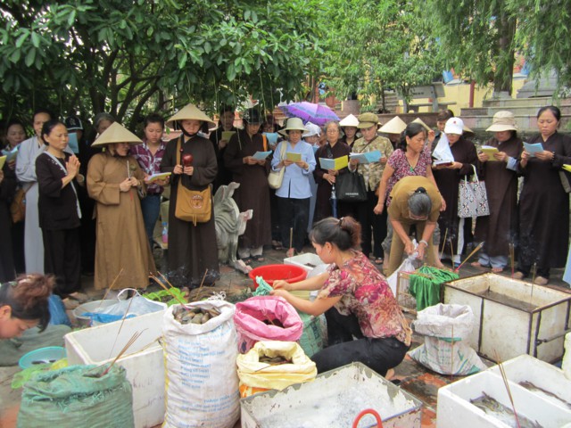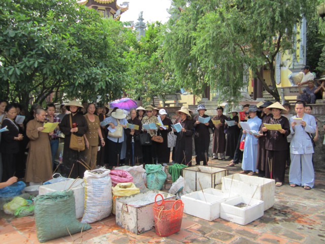 Theo như thông lệ hàng năm, cứ vào tiết Vu lan – Báo hiếu, Ni Sư Thích Tâm Chính, trụ trì chùa Vẽ, TP. Hải Phòng cùng Chư Ni, Phật tử Đạo tràng An Lạc trong chốn trụ xứ lại tổ chức lễ phóng sinh thể hiện tấm lòng từ bi, bác ái trong đạo Phật. Năm nay cũng không ngoài mục đích đó, Ni Sư Thích Tâm Chính cùng chư Ni trong chùa và bà con, Phật tử tổ chức lễ phóng sinh cầu quốc thái dân an nhân dịp tết Vu lan – Báo hiếu PL.2556 – DL .2012 tại Sông Giá nằm trên địa bàn Thủy Nguyên, TP. Hải Phòng.