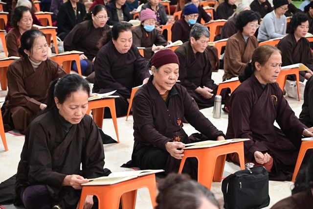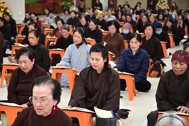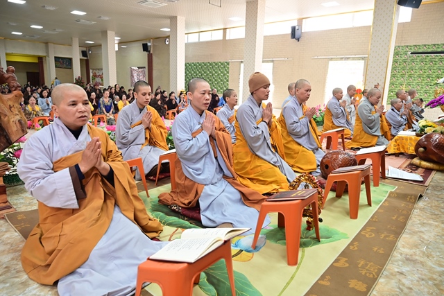Chư tôn đức dâng hương, bạch Phật, tụng kinh cầu nguyện