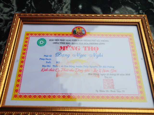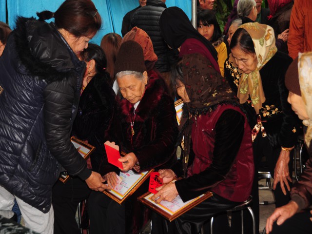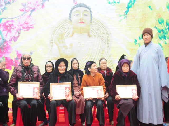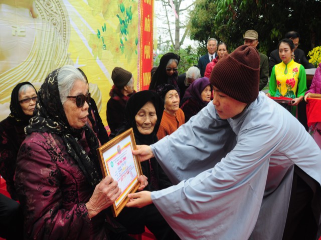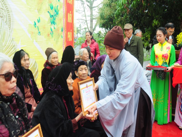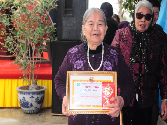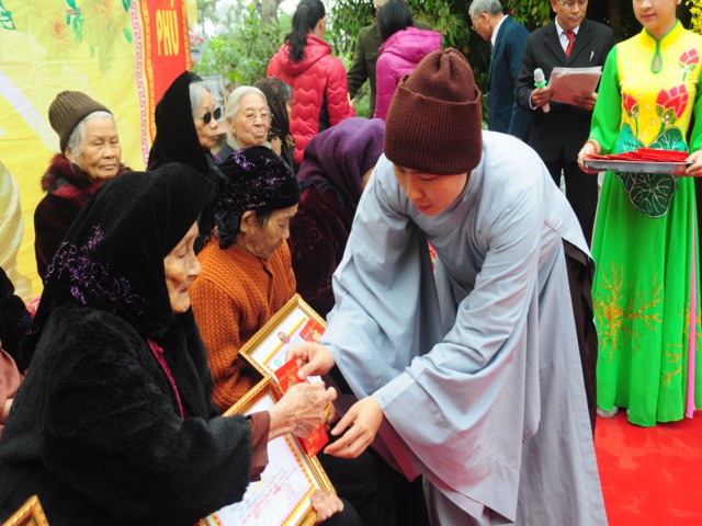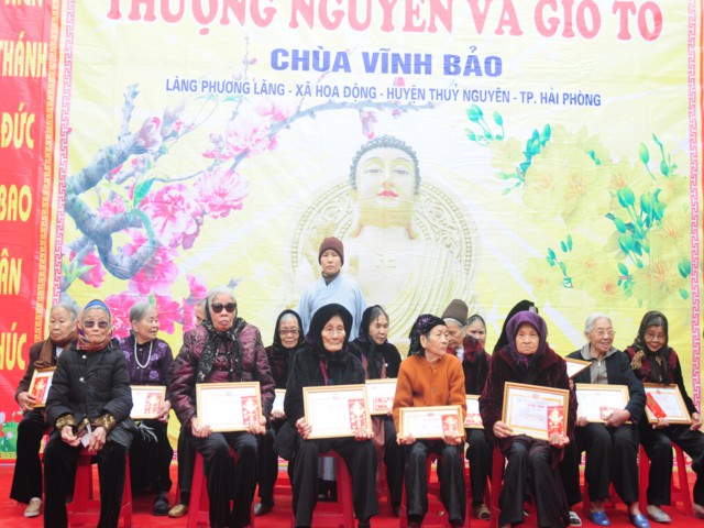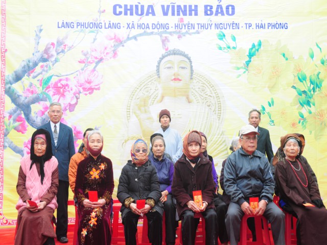 Nhằm tôn vinh, khích lệ, động viên người cao tuổi trong làng sống vui, sống khỏe, sống có ích, Ban tổ chức lễ hội cùng Sư thầy Thích Diệu Vi – Trụ trì chùa Vĩnh Bảo đã tổ chức lễ mừng thọ, trao quà cho 124 cụ cao niên trong xã độ tuổi từ 70 đến trên 90 tuổi.