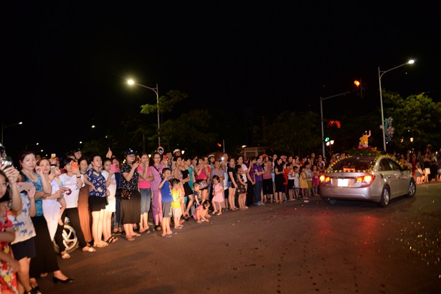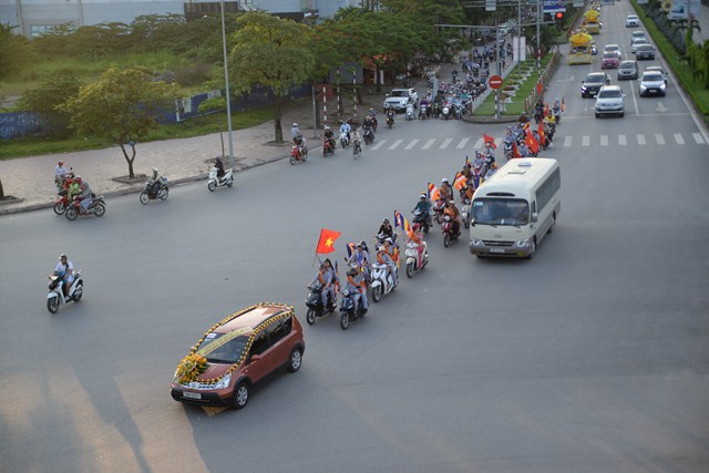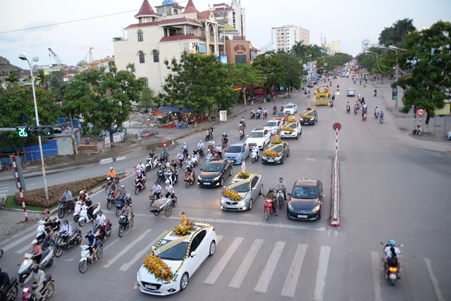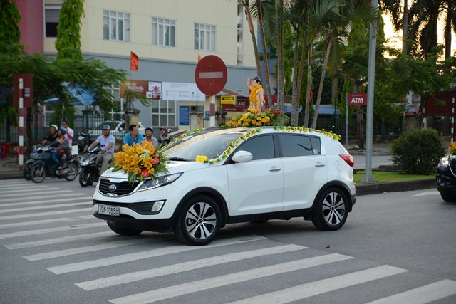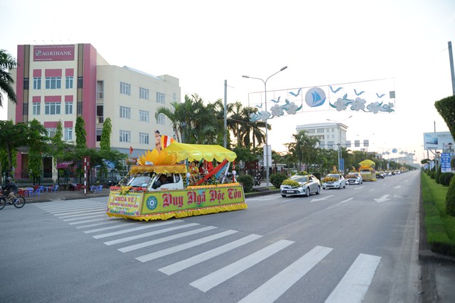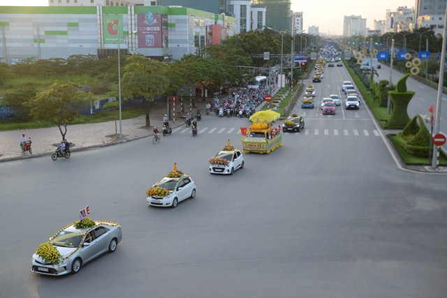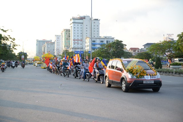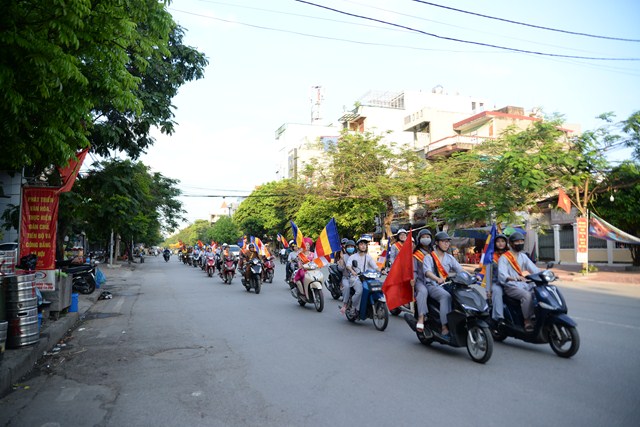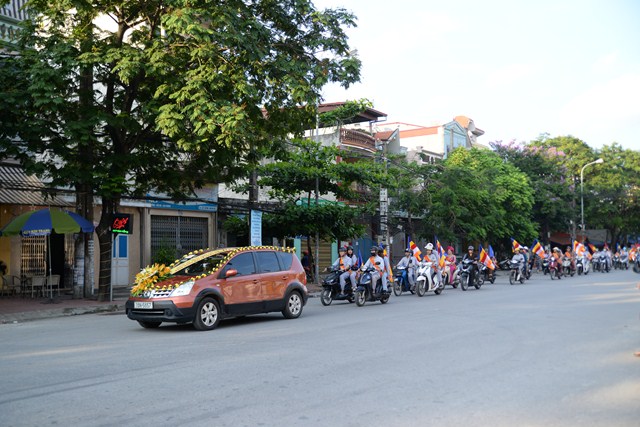 Đoàn xe hoa của Phật tử chùa Vẽ tiến về trung tâm thành phố