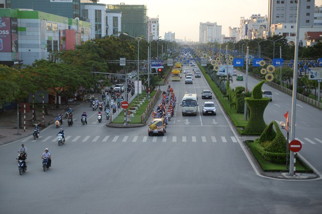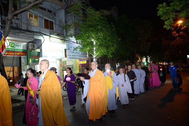 Đoàn Phật tử chùa Vẽ đi qua tuyến đường Lê Hồng Phong