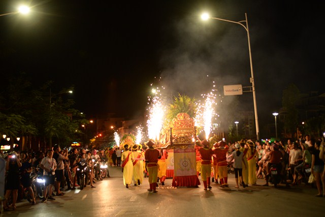 Đoàn diễu hành chùa Vẽ đi qua cầu vượt Lạch Tray