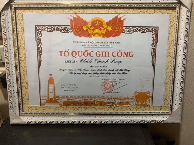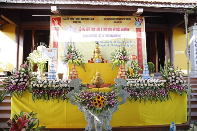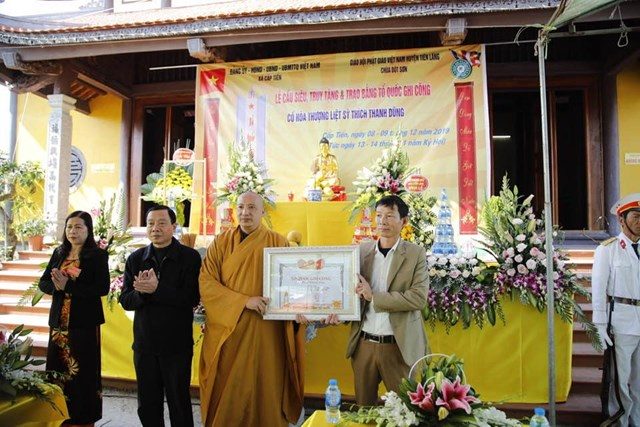 Sáng nay, ngày 9 tháng 12 năm 2019 ( nhằm ngày 14 tháng 11 năm Kỷ Hợi), tại chùa Đót Sơn ( Chùa Non Đông), xã Cấp Tiến, huyện Tiên Lãng, thành phố Hải Phòng đã diễn ra lễ Truy tặng và Trao bằng Tổ Quốc Ghi Công cho cố Hòa thượng Liệt sỹ Thích Thanh Dũng.