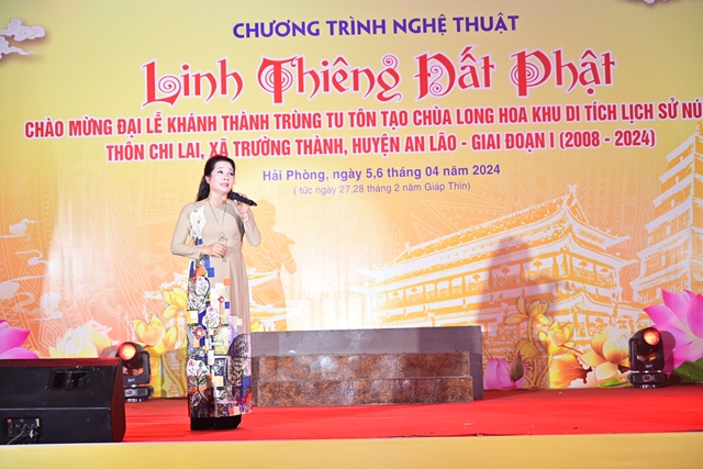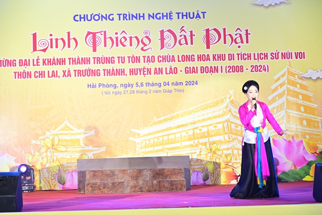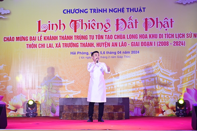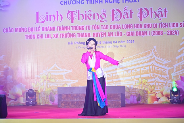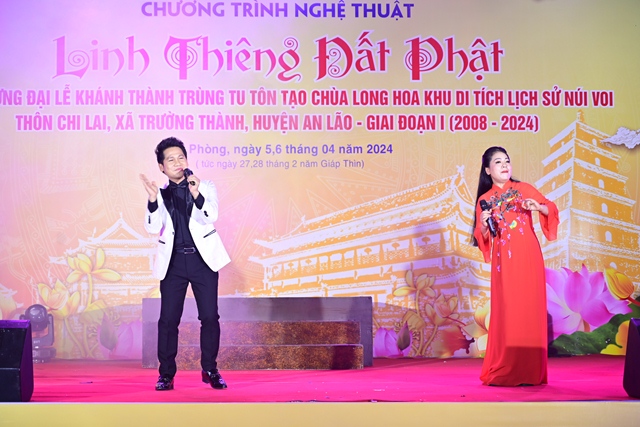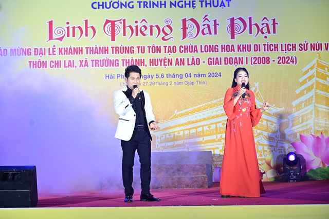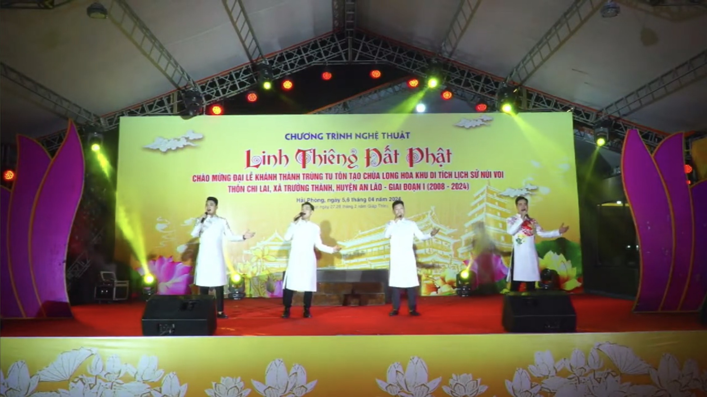 Tối ngày 06/04/2024 ( nhằm ngày 28/02 năm Giáp Thìn) tại chùa Long Hoa (Thôn Chi Lai, xã Trường Thành, huyện An Lão, thành phố Hải Phòng) đã diễn ra đêm nghệ thuật “ Linh thiêng Đất Phật” chúc mừng Đại lễ khánh thành chùa Long Hoa giai đoạn 1 ( 2008 – 2024). Đêm nghệ thuật quy tụ rất nhiều văn nghệ sỹ, ca sỹ có tên tuổi, có tầm ảnh hưởng rất lớn tại Việt Nam.