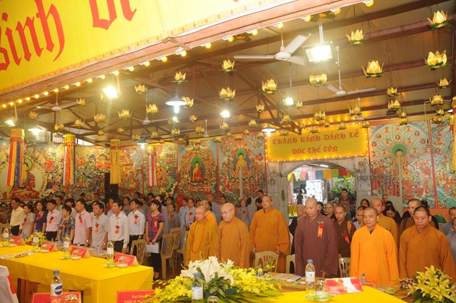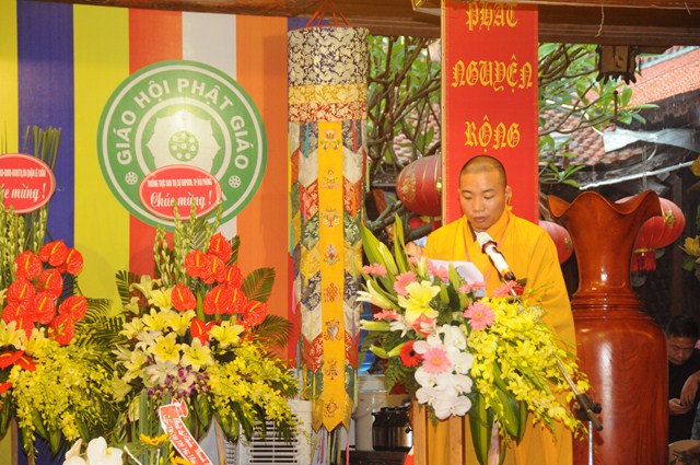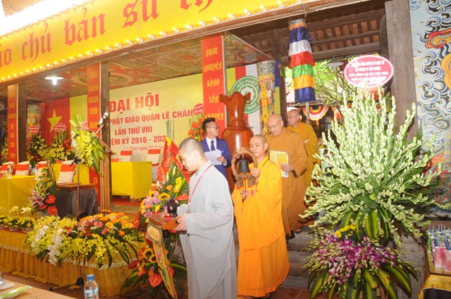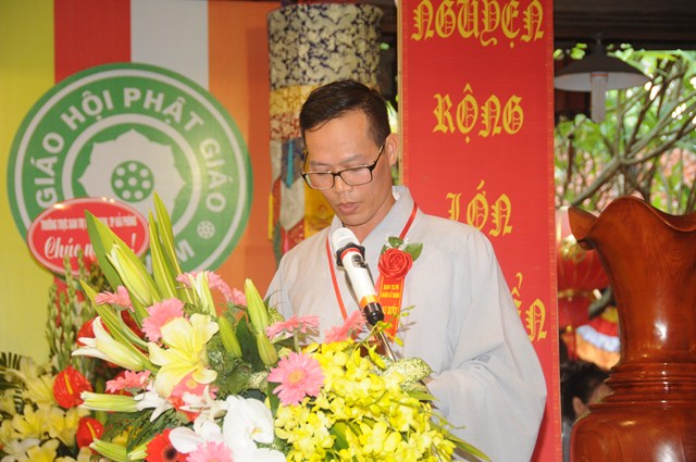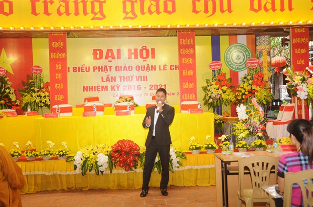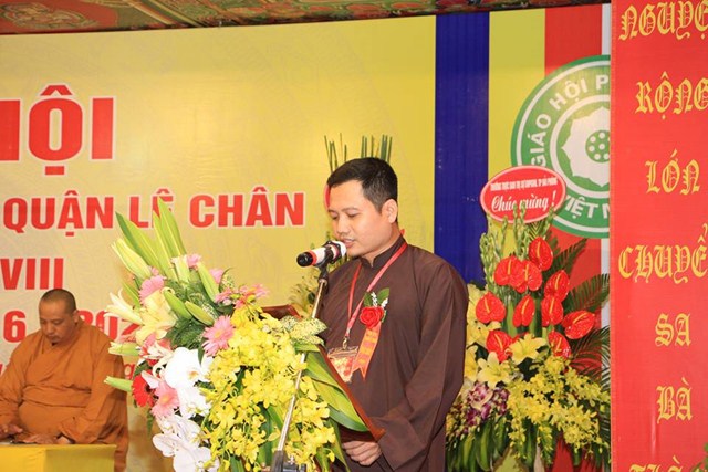 Sau nghi thức niệm Phật cầu gia bị, chào Quốc kỳ, đạo kỳ, một phút nhập từ bi quán tưởng niệm chư lịch đại Tổ Sư, các anh hùng liệt sỹ, chiến sỹ trận vong, đồng bào tử nạn đã hy sinh cho Độc lập tự do của Đất nước, Thượng tọa Thích Tục Bách – Trưởng Ban trị sự GHPGVN quận Lê Chân, trưởng Ban tổ chức đại hội đã lên phát biểu khai mạc Đại hội đại biểu Phật giáo quận Lê Chân lần thứ VIII ( nhiệm kỳ 2016 – 2021). Trong bài phát biểu khai mạc của mình, thượng tọa trưởng BTC đã nêu lên những thành tích mà Ban trị sự GHPGVN quận Lê Chân đã đạt được trong nhiệm kỳ VII ( 2012 – 2016) về các hoạt động Phật sự cũng như các hoạt động xã hội, Phật giáo quận Lê Chân đã đóng góp rất tích cực vào công cuộc xây dựng, kiến thiết Đất nước trong thời kỳ hội nhập nhất là vấn đề về công tác từ thiện xã hội, xóa đói giảm nghèo.