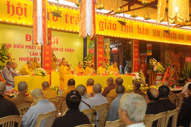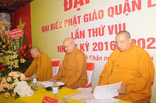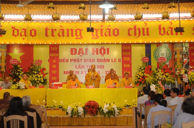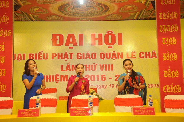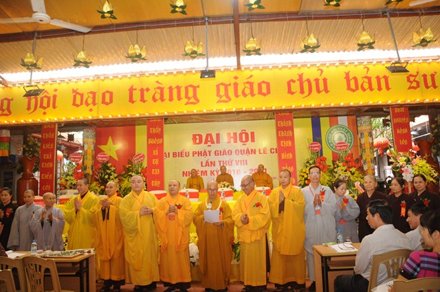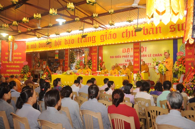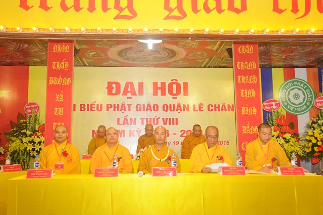 Đại hội đã lấy biểu quyết thông qua bản Dự thảo báo cáo tổng kết công tác Phật sự nhiệm kỳ VII ( 2012 – 2016) và phương hướng hoạt động Phật sự nhiệm kỳ VIII ( 2016 – 2021) của Ban trị sự GHPGVN quận Lê Chân và thông qua danh sách thành phần nhân sự của Ban trị sự GHPGVN quận Lê Chân nhiệm kỳ VIII ( 2016 – 2021). Theo đó Ban trị sự GHPGVN quận Lê Chân nhiệm kỳ VIII bầu ra 19 ủy viên. Trong đó 10 ủy viên là Chư tôn đức Tăng Ni và 9 ủy viên là các Phật tử. Ban trị sự nhiệm kỳ mới đã ra mắt và lên phát biểu nhận nhiệm vụ, sẽ cố gắng thực hiện tốt Hiến chương, Nội quy Tăng sự của Giáo hội, quy chế của BTS GHPGVN quận Lê Chân và các quy định của GHPGVN Tp. Hải Phòng trên tinh thần lục hòa cộng trụ, đem hết sức mình làm tròn trách nhiệm mà Đại hội đã tin tưởng và giao phó.