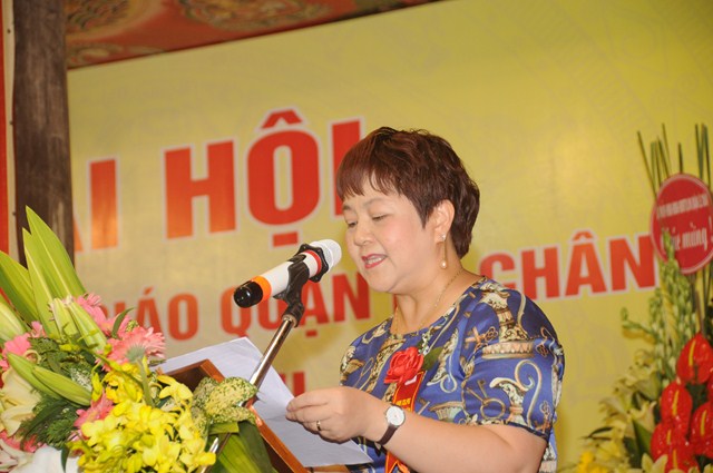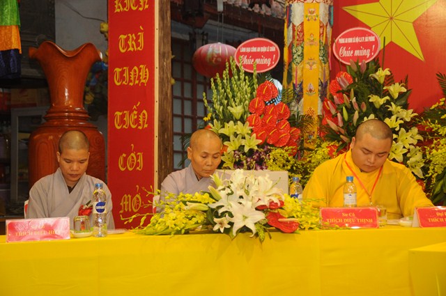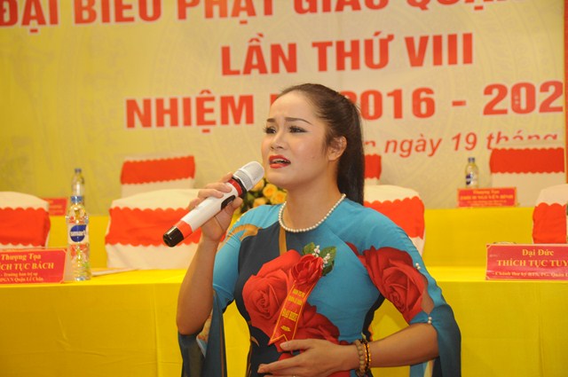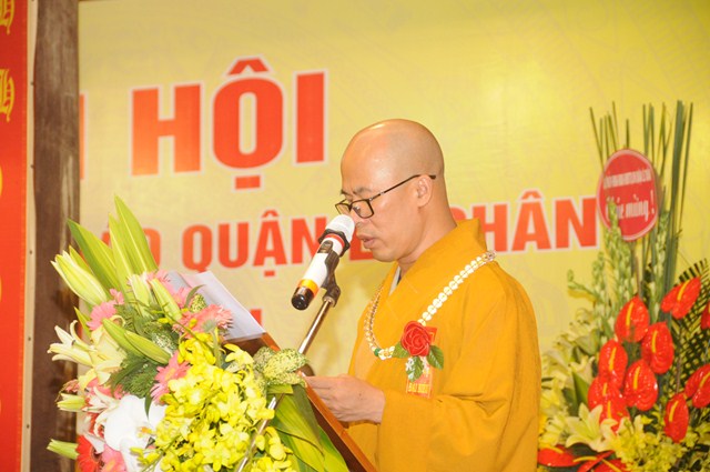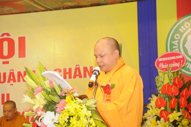 Thay mặt cho BTS GHPGVN quận Lê Chân, Đại đức Thích Giác Sơn – Phó ban trị sự GHPGVN quận Lê Chân đã lên tuyên đọc Dự thảo báo cáo tổng kết Công tác Phật sự nhiệm kỳ VII ( 2012 – 2016) và phương hướng hoạt động Phật sự nhiệm kỳ VIII ( 2016 – 2021). Trong bản Dự thảo báo cáo tổng kết công tác Phật sự nhiệm kỳ VII ( 2012 – 2016) đã nêu lên các hoạt động Phật sự và thành quả đã đạt được của Tăng Ni, Phật tử quận Lê Chân. Trong đó có các mặt về công tác tăng sự, đào tạo, giáo dục tăng ni; Vấn đề Hoằng pháp, hoạt động hướng dẫn Phật tử, hoạt động nghi lễ, hoạt động sinh hoạt văn hóa, công tác quản lý, trùng tu, tôn tạo chùa cảnh; Công tác từ thiện xã hội và tham gia vào các hoạt động xã hội khác. Đồng thời trong bản báo cáo cũng nêu rõ phương hướng hoạt động Phật sự của Ban trị sự GHPGVN quận Lê Chân nhiệm kỳ VIII ( 2016 – 2021). Trong đó có 7 vấn đề cần phải kiện toàn trong nhiệm kỳ tới. Đó là các vấn đề về tổ chức nhân sự; Quản lý các tự viện; Tổ chức hướng dẫn tăng ni Phật tử học tập Hiến chương, nội quy Tăng sự của giáo hội, nghị quyết đại hội VIII của GHPGVN và GHPGVN Tp. Hải Phòng, pháp lệnh tín ngưỡng tôn giáo của Nhà nước; Thắt chặt mối quan hệ của BTS với các cấp chính quyền, mặt trận để giải quyết những tồn đọng về mặt đất đai ở các chùa trên địa bàn quận; Hướng dẫn các chùa tu bổ chùa cảnh, tích cực tham gia phong trào toàn dân đoàn kết xây dựng nếp sống văn minh; Vận động nhân dân, Phật tử phát huy chính tín, bài trừ các hủ tục mê tín dị đoan và các tệ nạn xã hội; Vấn đề cuối cùng là tích cực tham gia lao động, sản xuất, tham gia vào công tác từ thiện xã hội phối hợp cùng với chính quyền trên địa bàn quận sở tại.