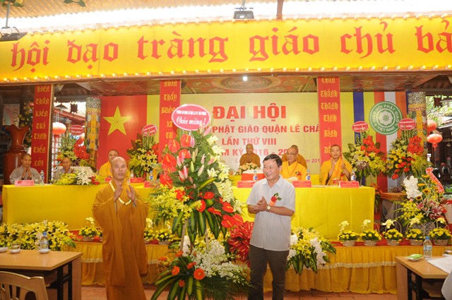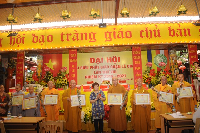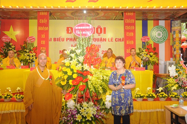 Tại đại hội, Ban trị sự GHPGVN quận Lê Chân đã đón nhận những lẵng hoa chúc mừng của chính quyền thành phố Hải Phòng và đại diện chính quyền quận Lê Chân. Đồng thời, bà Trần Thị Hương Duyên – Phó chủ tịch UBND quận Lê Chân, đại diện cho lãnh đạo quận đã trao giấy khen cho tập thể và cá nhân tiêu biểu của BTS GHPGVN quận Lê Chân đã có thành tích cao trong công tác xã hội trên địa bàn quận nhiệm kỳ vừa qua.