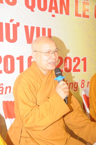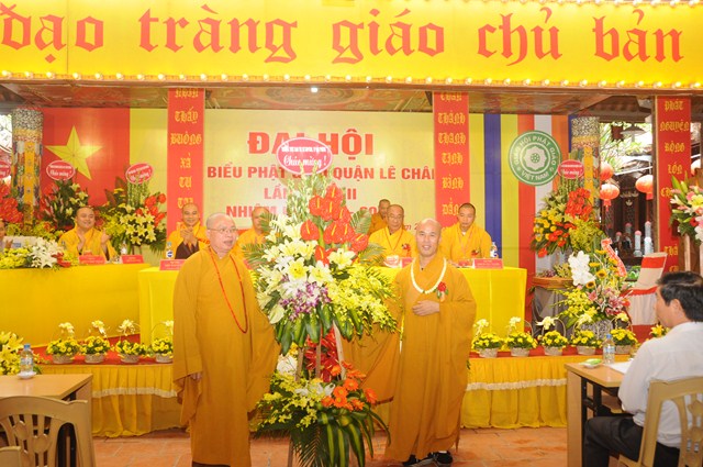 Trước khi bế mạc Đại hội, Đại diện cho Chư tôn đức chứng minh, Hòa thượng Thích Quảng Tùng – Trưởng Ban trị sự GHPGVN thành phố Hải Phòng đã có bài phát biểu và ban đạo từ tán thán công đức của Ban trị sự GHPGVN nhiệm kỳ VII ( 2012 – 2016) đã hoàn thành xuất sắc các hoạt động Phật sự cũng như các công tác xã hội mà BTS GHPGVN quận Lê Chân đã đề ra. Đồng thời Hòa thượng cũng hy vọng ủy viên BTS GHPGVN quận Lê Chân mới ra mắt trong nhiệm kỳ tới sẽ tiếp tục phát huy, kế thừa những thành quả đã đạt được và hoàn thành tốt phương hướng hoạt động mà Ban trị sự đã đề ra trong bản báo cáo.