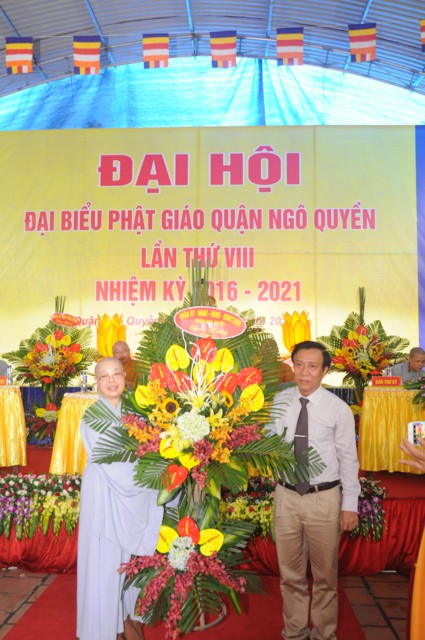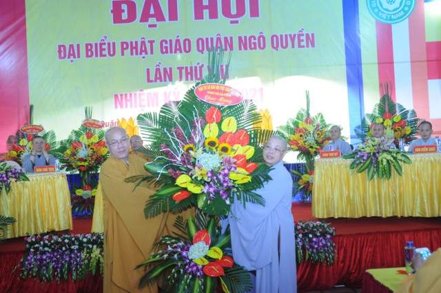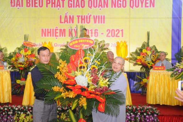 Sau nghi thức niệm Phật cầu gia bị, chào Quốc kỳ, Đạo kỳ và một phút nhập từ bi quán, tưởng niệm Chư tôn đức giáo phẩm đã viên tịch qua các thời kỳ, các anh hùng liệt sỹ đã hy sinh cho độc lập tự do của Đất nước, thay mặt cho BTC đại hội, Ni sư Thích Đàm Kiên – Trưởng BTC đại hội đã lên tuyên đọc Diễn văn khai mạc Đại hội đại biểu Phật giáo quận Ngô Quyền lần thứ VIII, nhiệm kỳ 2016 – 2021. Ngay sau khi tuyên bố khai mạc đại hội, ban trị sự GHPGVN quận Ngô Quyền đã đón nhận những lẵng hoa tươi thắm chúc mừng đại hội đại biểu PG quận Ngô Quyền của BTS GHPGVN thành phố Hải Phòng, Ban trị sự các quận huyện của thành phố, đại diện các cấp chính quyền địa phương cùng các sở ban ngành đóng trên địa bàn quận.