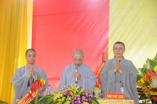 Tiếp đó, Ni Sư Thích Tâm Kính, thay mặt cho BTS GHPGVN quận Ngô Quyền đã lên trình bày bản Dự thảo Báo cáo tổng kết công tác Phật sự nhiệm kỳ VII ( 2011 – 2016) và phương hướng hoạt động Phật sự nhiệm kỳ VIII ( 2016 – 2021) của BTS GHPGVN quận Ngô Quyền . Trong bản báo cáo dự thảo công tác Phật sự nhiệm kỳ VII ( 2011 – 2016), Ban trị sự GHPGVN quận Ngô Quyền đã nêu lên những thành tựu đáng kể mà BTS quận đã đạt được về các mặt như hoằng pháp, trùng tu tôn tạo chùa cảnh, công tác từ thiện xã hội, tham gia nhiệt tình vào các phong trào do UB MTTQ phát động…Trong 5 năm qua, BTS GHPGVN quận Ngô Quyền đã thi đua thực hiện tốt Nghị quyết Đại hội VII của GHPGVN thành phố Hải Phòng, góp phần cùng nhân dân trong quận tiếp tục hoàn thành sự nghiệp công nghiệp hóa, hiện đại hóa Đất nước.