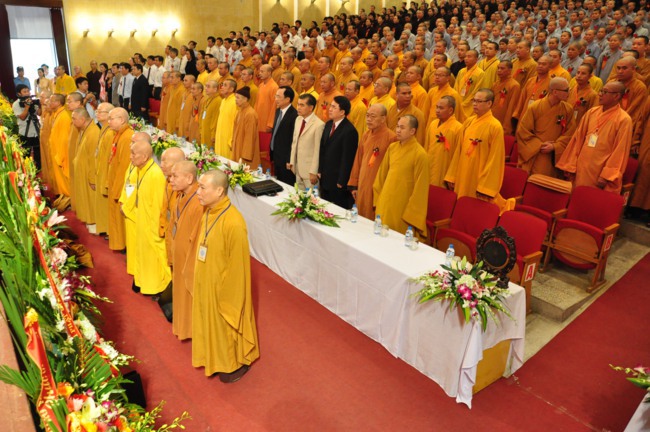 Đại hội đã nhất tâm lắng nghe lời đạo từ của Hòa thượng Thích Thiện Nhơn – thay mặt Ban thường trực HĐTS GHPGVN.