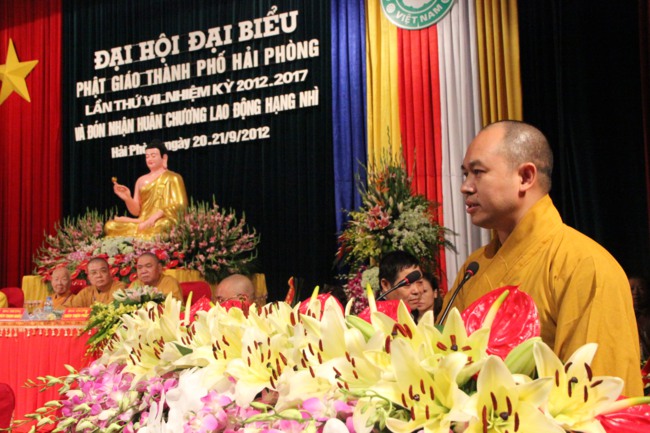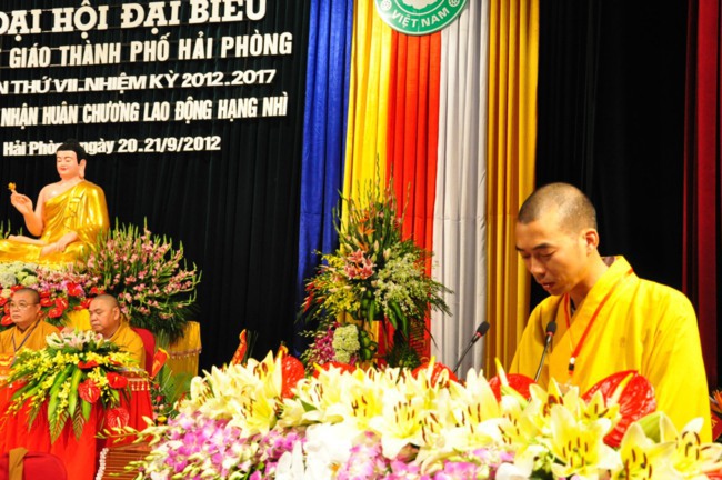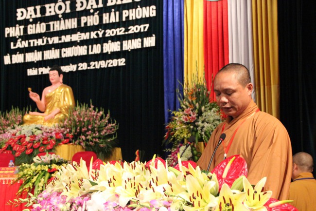 Tiếp theo, Đại đức Thích Tục Khang – Chánh thư ký BTS Thành hội Phật giáo Hải Phòng đã đọc báo cáo tổng kết công tác Phật sự nhiệm kỳ VI (2007 – 2012) và phương hướng hoạt động nhiệm kỳ VII (2012 – 2017). Bản báo cáo nêu rõ: