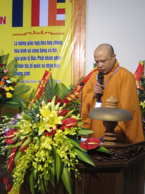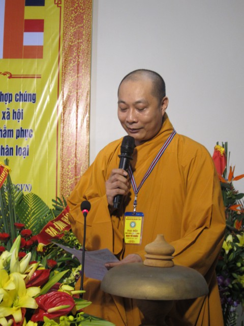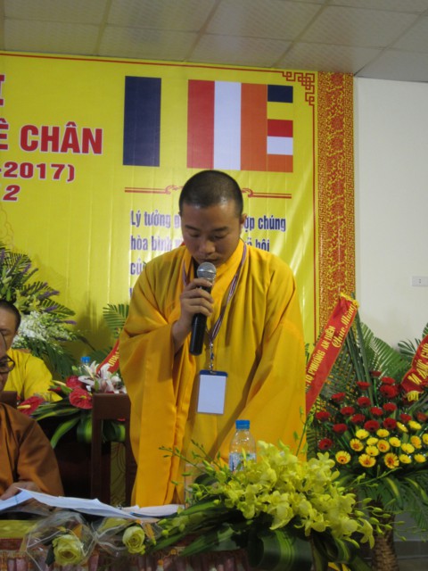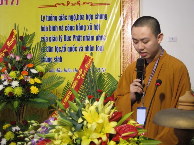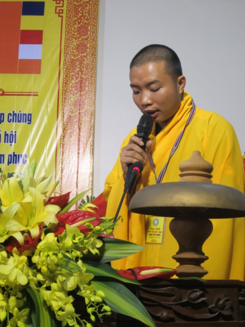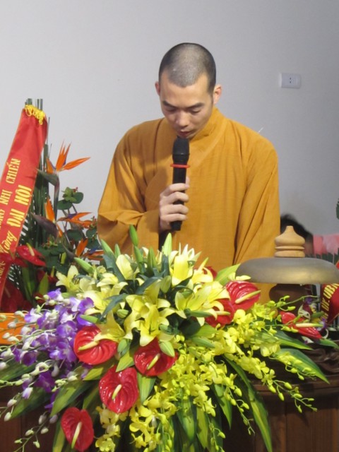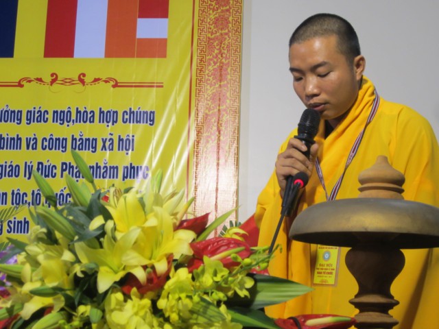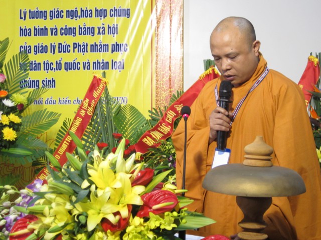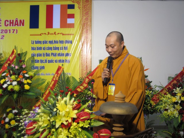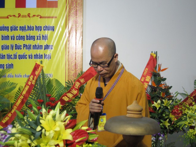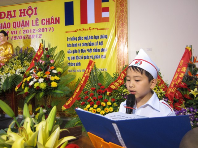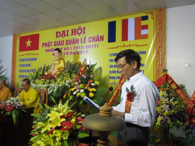 Sau nghi thức niệm Phật cầu gia bị, chào quốc kỳ, đạo kỳ, tưởng niệm Chư tôn đức đã viên tịch và các anh hùng liệt sỹ đã hy sinh cho Đất nước, ĐĐ. Thích Tục Bách – Chánh đại diện của Ban đại diện PG Quận Lê Chân đã chính thức tuyên đọc diễn văn khai mac Đại hội PG Quận Lê Chân nhiệm kỳ VII (2012 – 2017).