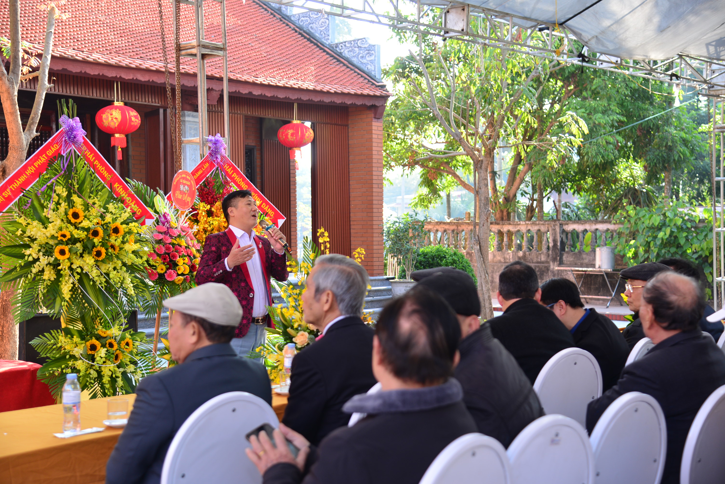 Ông: Ngô Đức Duỵ – Bí thư chi bộ Tổ dân phố Quang Trung báo cáo tóm tắt quá trình xây dựng chùa Đức Hậu