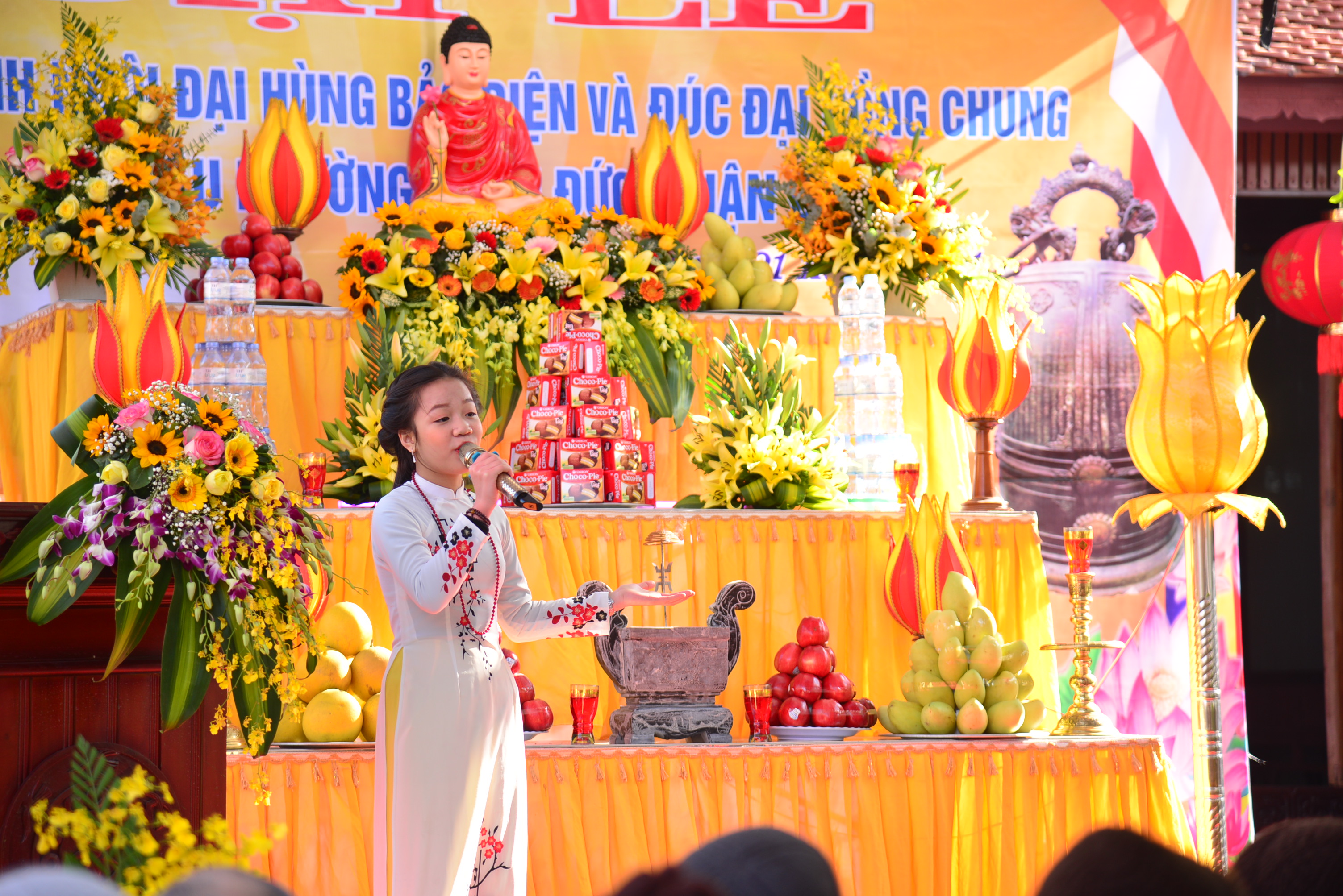 Trước khi kết thúc buổi lễ, Chư tôn đức Tăng Ni, các cấp chính quyền, Phật tử và nhân dân địa phương đã làm lễ cắt băng khánh thành Ngôi Đại Hùng Bảo Điện chùa Đức Hậu và lễ trì chú, gia trì rót đồng đúc Đại hồng chung nặng gần 1 tấn, cầu nguyện Thế giới hòa bình, chúng sinh an lạc, tật bệnh tiêu trừ và đạo pháp được trường tồn mãi mãi.