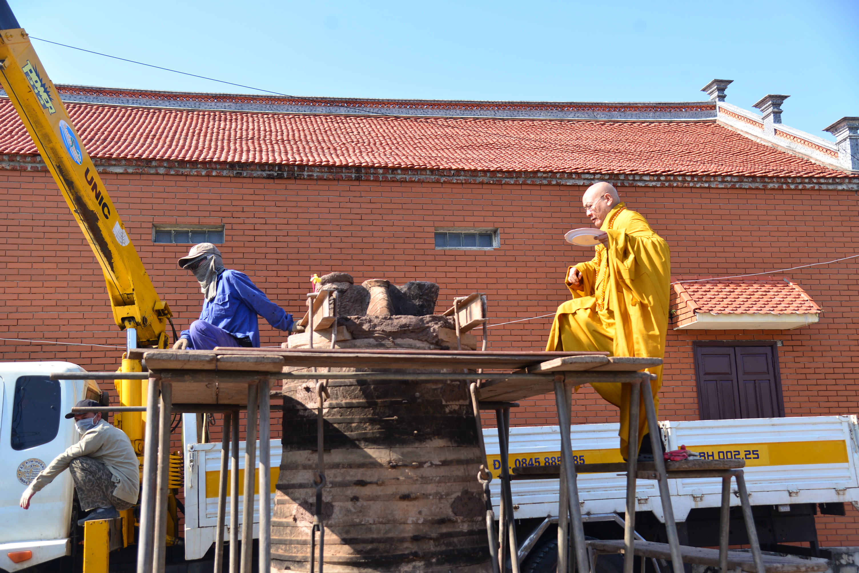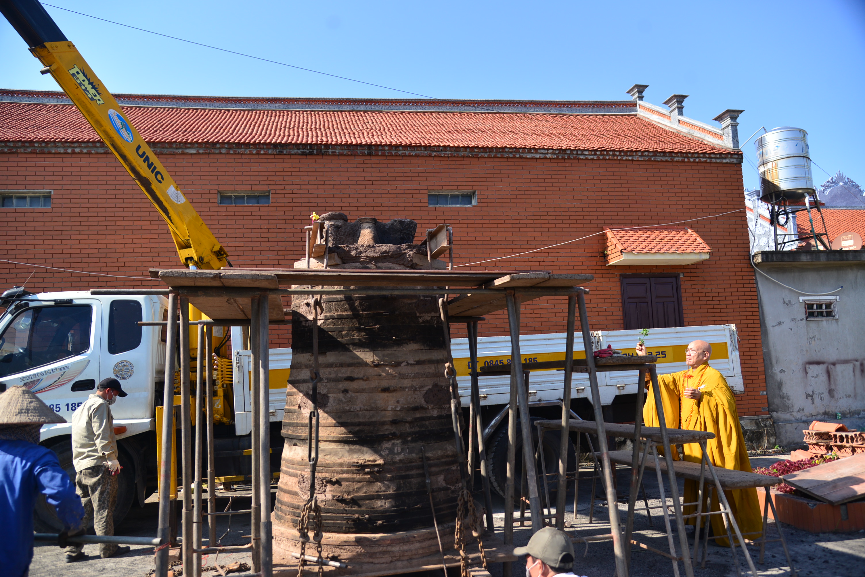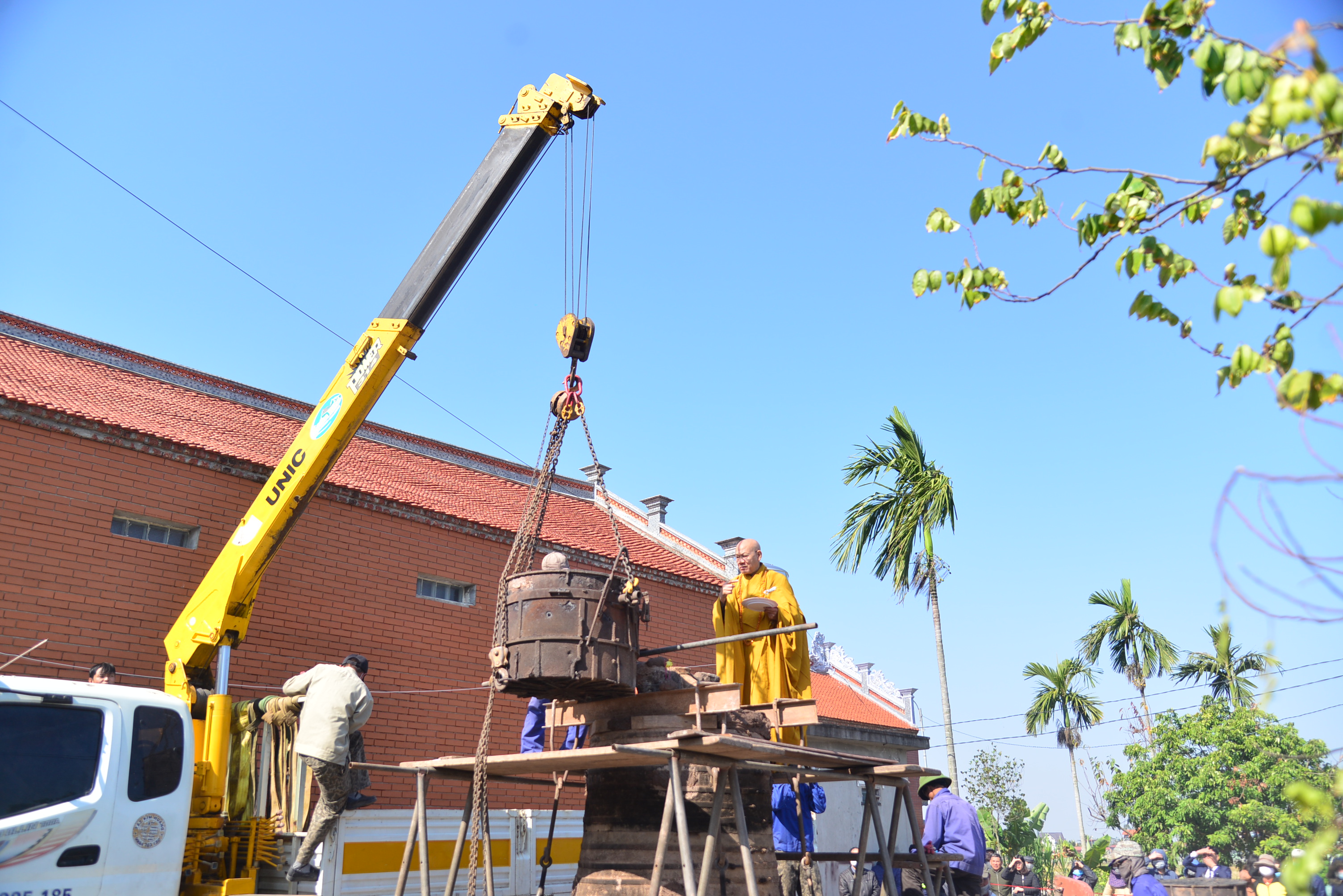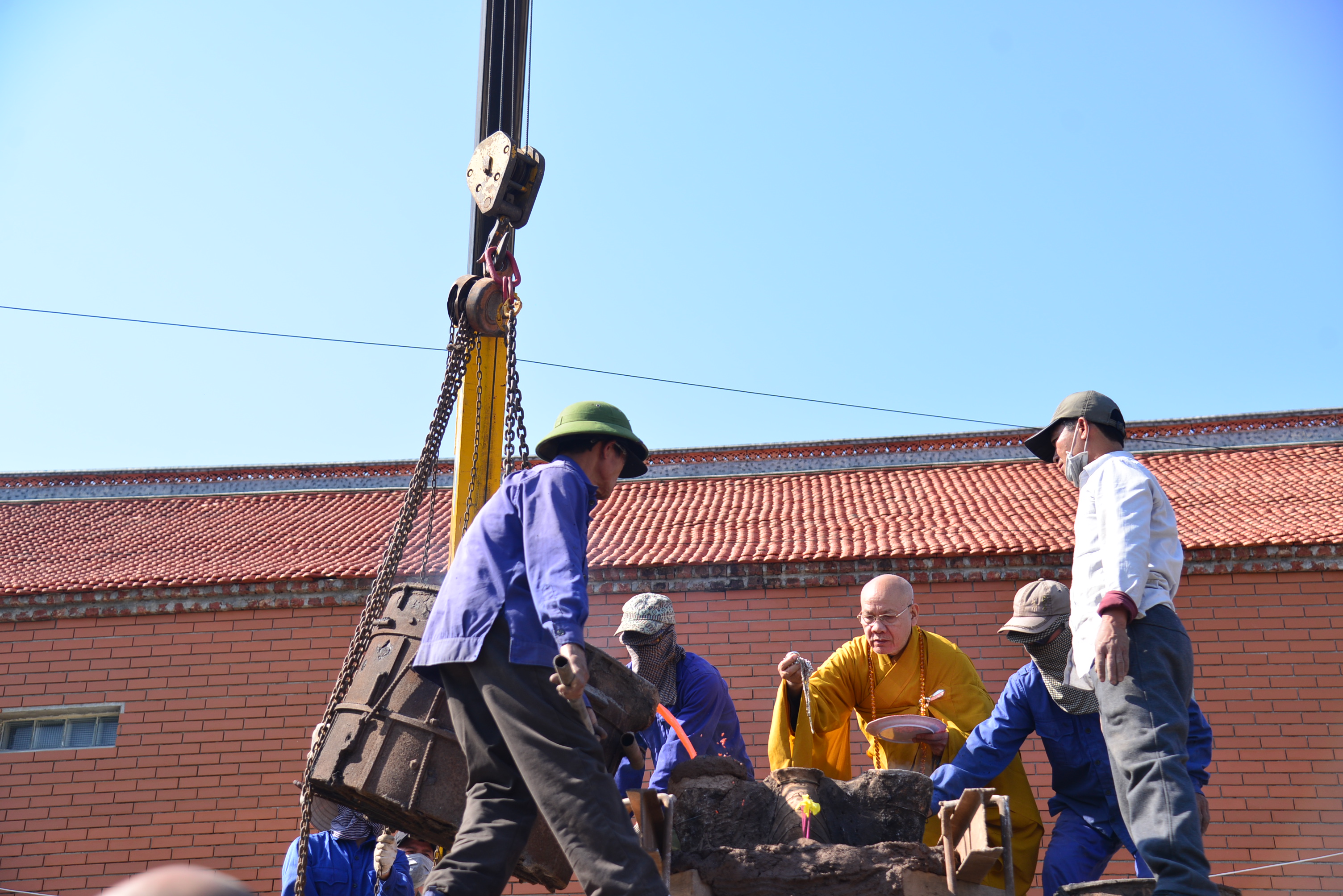 Chư tôn đức cử hành nghi lễ gia trì, chú nguyện rót đồng đúc đại hồng chung