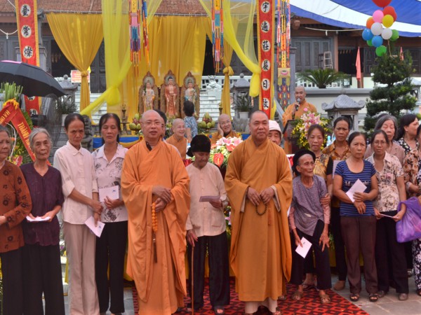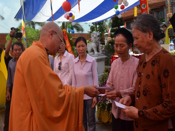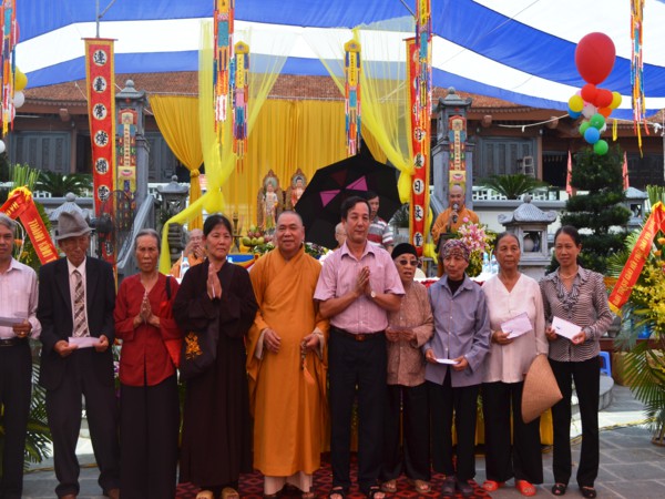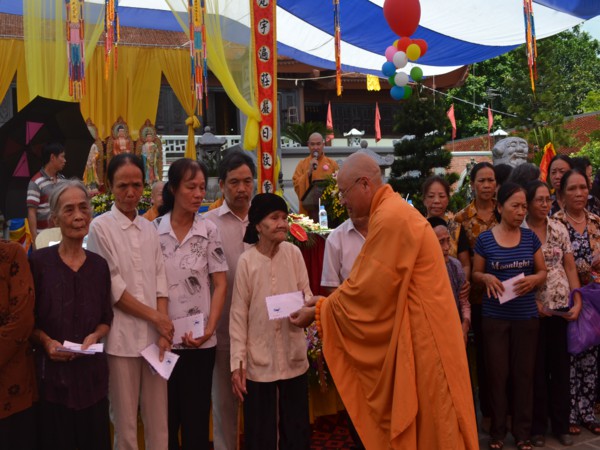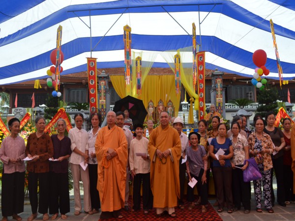 Nhân đây Chư tôn đức đại diện cho Hội đồng trị sự TW GHPGVN và chư tôn đức trong BTS GHPGVN Thành phố Hải Phòng đã trao tặng gần 100 xuất quà cho các bà mẹ Việt Nam anh hùng nhân mùa Vu Lan PL.2557, DL.2013 và các gia đình liệt sỹ, các gia đình có công với cách mạng.