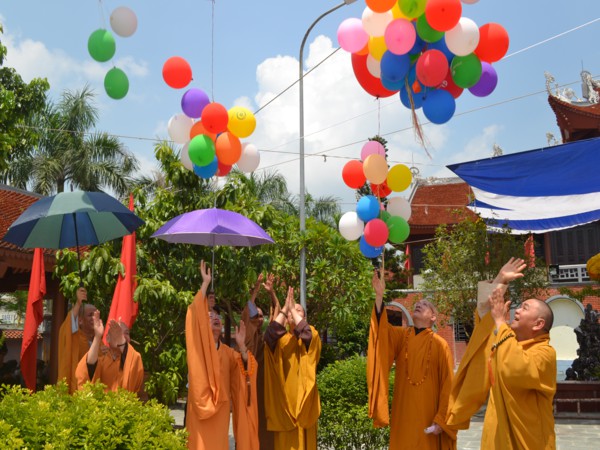 Trước khi kết thúc buổi lễ, Chư tôn đức và bà con Phật tử đã cử hành nghi lễ niêm hương bạch Phật và thả bóng bay cầu nguyện hòa bình, cầu nguyện cho quốc thái dân an, cầu nguyện cho hương linh của các anh hùng liệt sỹ sớm được siêu thoát.