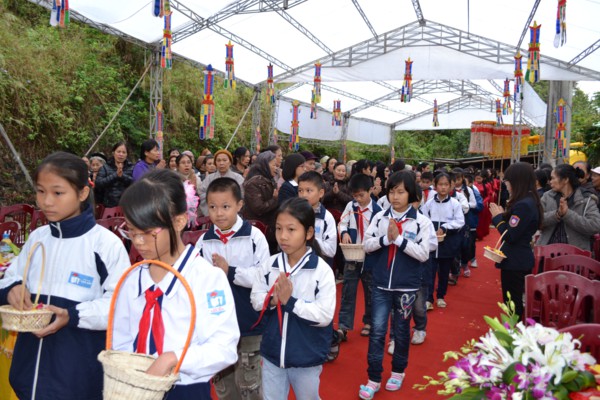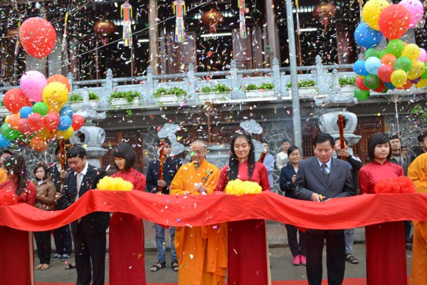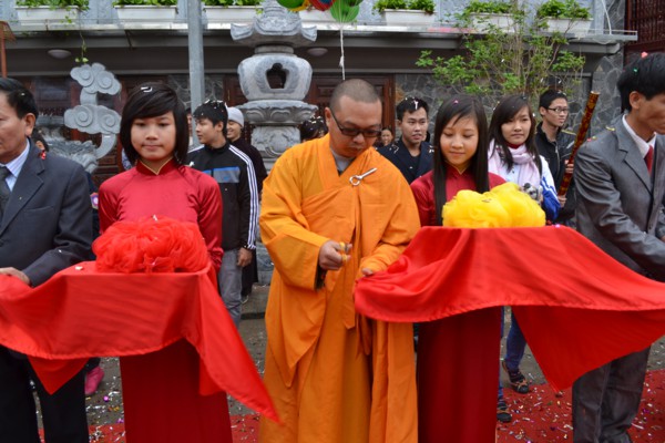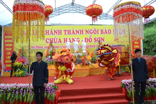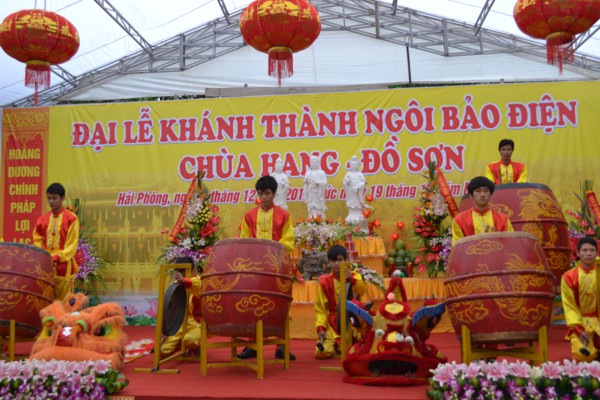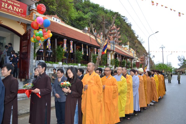 Đúng 10 giờ sáng cùng ngày, Đại lễ cắt băng khánh thành ngôi Đại hùng Bảo điện chùa Hang đã được diễn ra trước sự chứng kiến và niềm hoan hỷ của Chư tôn đức Tăng Ni cùng đông đảo bà con Phật tử, nhân dân địa phương.