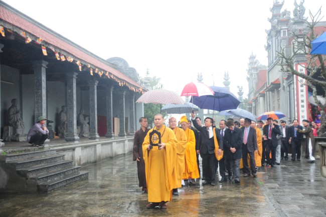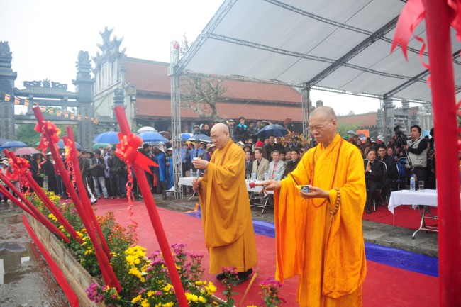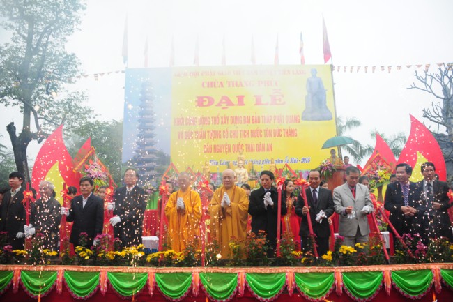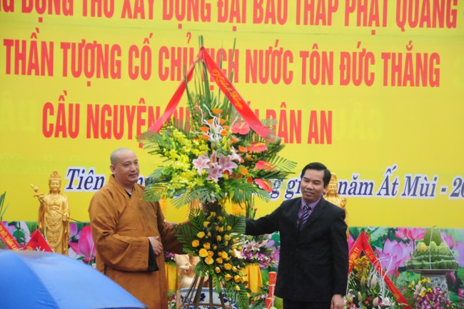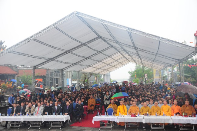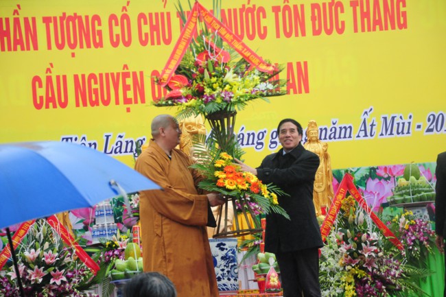 Về phía khách mời TƯ có ông: Nguyễn Văn Quynh – Ủy viên TƯ Đảng, phó trưởng ban tổ chức TƯ. Về phía khách mời đại biểu thành phố Hải Phòng có sự hiện diện của ông: Nguyễn Đình Then – Ủy viên ban thường vụ thành ủy, trưởng Ban dân vận, chủ tịch UB MTTQVN Tp. Hải Phòng, ông: Lê Văn Nhã – Phó giám đốc sở Nội vụ, trưởng ban tôn giáo Tp. Hải Phòng, các ông bà đại diện thành ủy, HĐND, UBND, UB MTTQ, các sở ban ngành Tp. Hải Phòng. Về phía khách mời lãnh đạo huyện Tiên Lãng có sự hiện diện của ông: Cao Xuân Liên, bí thư huyện ủy huyện Tiên Lãng, ông: Nguyễn Văn Tùng – Chủ tịch UBND huyện Tiên Lãng, các ông bà đại diện HĐND, UBND, UB MTTQ, các sở ban ngành huyện Tiên Lãng cùng hàng ngàn Phật tử, thiện nam, tín nữ gần xa, nhân dân địa phương, các nhà đại thí chủ, các mạnh thường quân và đặc biệt có sự tham gia của  gia đình, thân nhân cố chủ tịch nước Tôn Đức Thắng.
