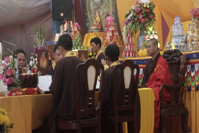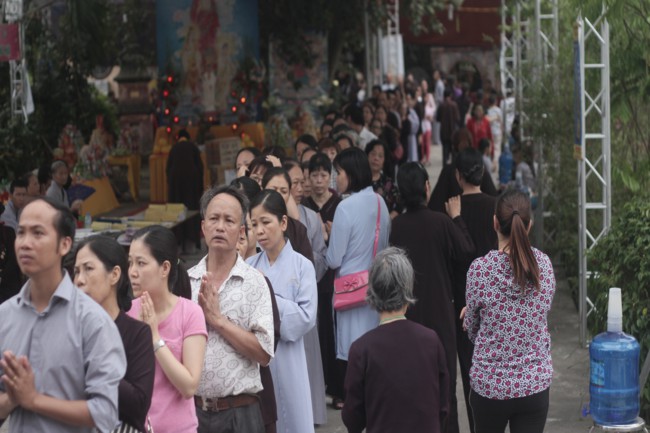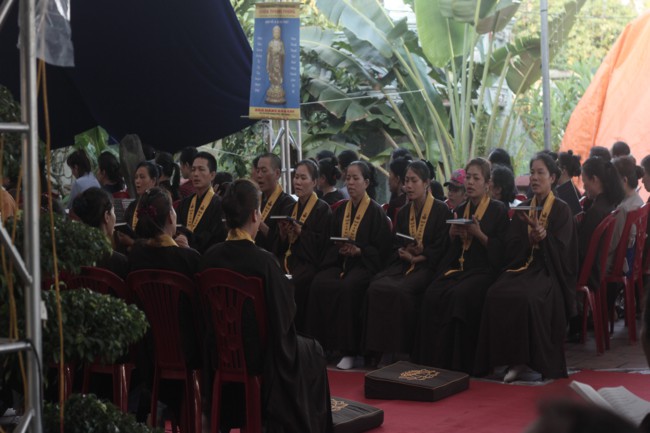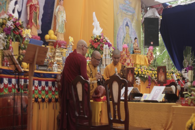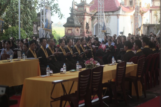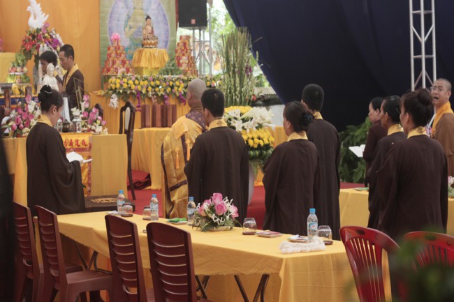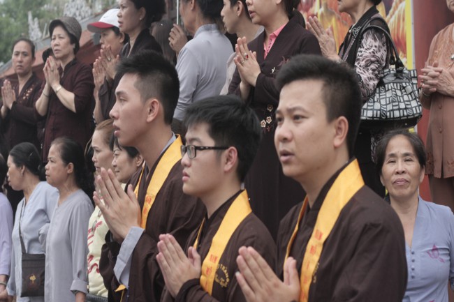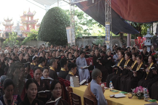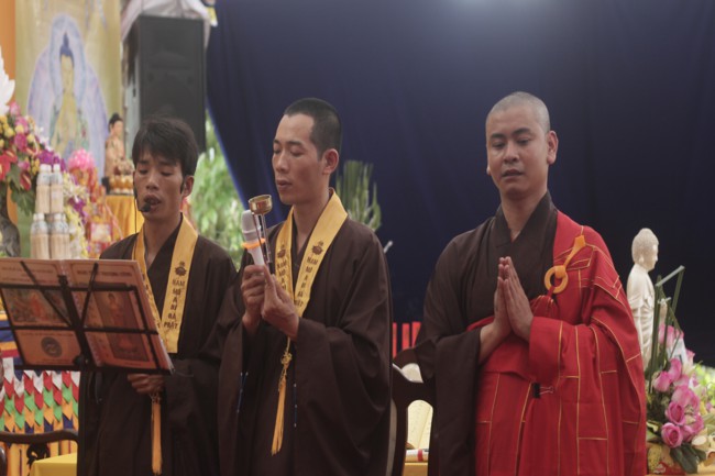 Trước khi chính thức diễn ra buổi lễ tắm Phật theo nghi thức truyền thống nhân dịp kỷ niệm 2640 năm ngày sinh của Đức Bản Sư Thích Ca Mâu Ni Phật PL. 2560 – DL. 2016, chư tôn đức Tăng Ni, đại biểu chính quyền và quý Phật tử đã tổ chức khóa lễ tụng kinh cầu nguyện Quốc thái, dân an, chúng sinh an lạc và cầu siêu cho các anh hùng liệt sỹ, đồng bào tử nạn, cửu huyền thất tổ sớm được siêu thăng An Lạc Quốc.
