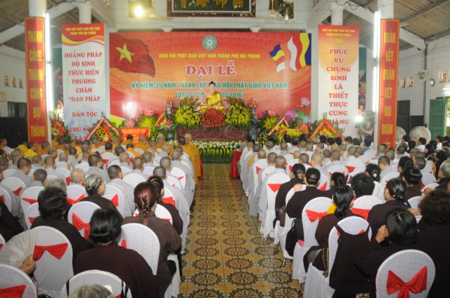 Sau khi hòa bình lập lại thống nhất Đất nước, cũng là lúc chư tôn đức tăng ni, Phật tử thực hiện nguyện vọng, tâm tư, nguyện vọng của mình. Đó là thống nhất Phật giáo mà các thế hệ tiền bối đã dày công xây dựng. Đây chính là duyên khởi của sự thành lập GHPGVN vào ngày 7/11/1981 tại chùa Quán Sứ, thủ đô Hà Nội – Văn phòng Trụ sở của GHPGVN. Đây là bước ngoặt quan trọng đối với lịch sử Phật giáo ViệtNam. Qua 7 nhiệm kỳ hoạt động, GHPGVN đã không ngừng phát triển và ổn định về mọi mặt, đồng thời góp phần xây dựng và phát triển Đất nước trên con đường đồng hành cùng Dân tộc và cộng đồng Phật giáo thế giới với truyền thống hộ Quốc, an dân. Chính vì lẽ đó, hôm nay Ban trị sự GHPGVN thành phố Hải Phòng đã long trọng tổ chức lễ kỷ niệm 35 năm thành lập GHPGVN ( 7/11/1981 – 7/11/2016).
