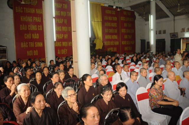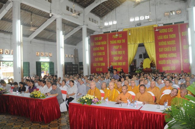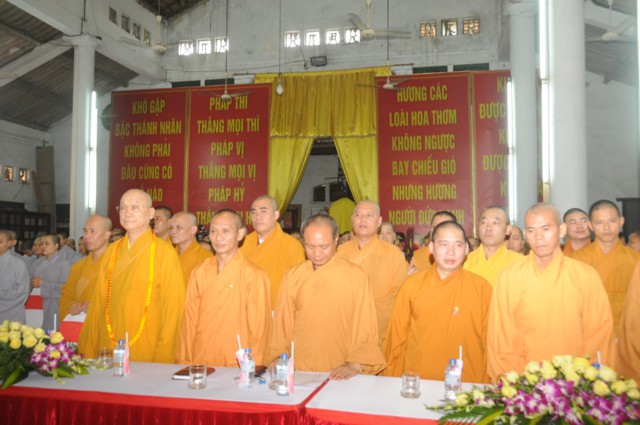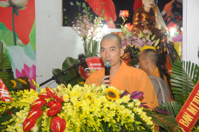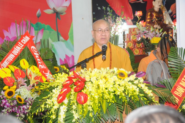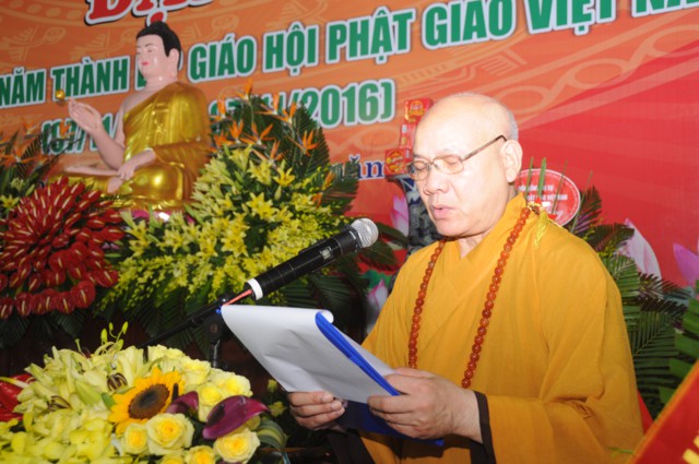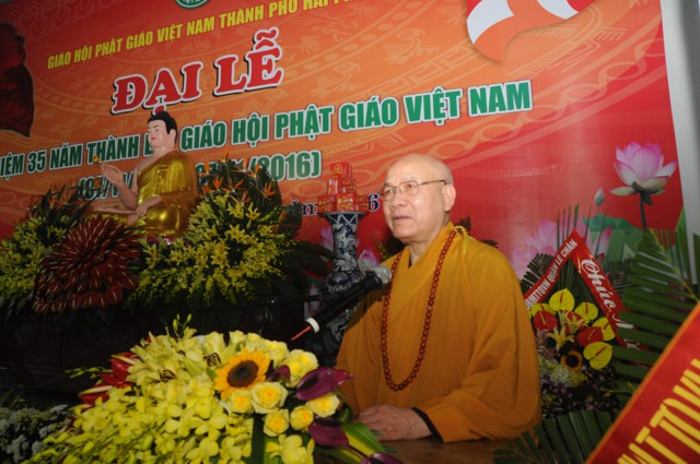 Tiếp đó, thượng tọa Thích Thanh Giác – Phó trưởng Ban thường trực BTS GHPGVN thành phố Hải Phòng đã lên tuyên đọc Diễn văn Đại lễ kỷ niệm 30 năm thành lập GHPGVN cua Hòa thượng chủ tịch HĐTS TƯ GHPGVN. Trong bài diễn văn khai mạc của Hòa thượng chủ tịch HĐTS TƯ GHPGVN nêu rõ: “ Chúng ta vui mừng trước thành tựu các Phật sự trong 35 năm qua sẽ là nền tảng, sức bật mới cho công tác Phật sự nhiệm kỳ VIII ( 2017 – 2022) của Giáo hội, các ban, viện trung ương, Phật giáo các tỉnh thành và Giáo hội càng vững bền và phát triển vững mạnh theo lý nhân quả và duyên sinh vô tận của Phật giáo. Cứ vững chãi tự tin làm lợi ích cho Đạo Pháp và Dân tộc, chúng sinh, góp phần xây dựng dân giàu nước mạnh, xã hội công bằng, dân chủ văn minh theo hướng phát triển hiện đại thì kết quả theo sau như bóng theo hình.”