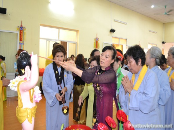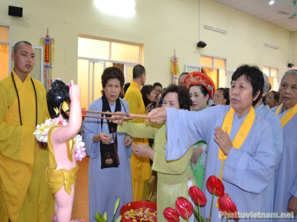 Trước khi kết thúc buổi lễ, Chư tôn đức Tăng đã làm lễ chú nguyện, dâng hương, bạch Phật và cử hành nghi lễ tắm Phật theo nghi thức truyền thống trong niềm hoan hỷ của chư tôn đức và bà con Phật tử gần xa.