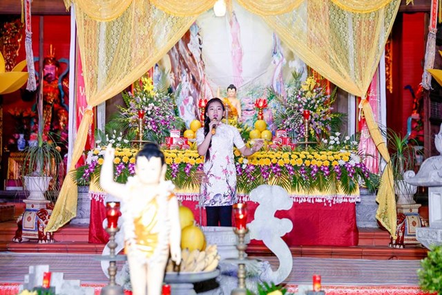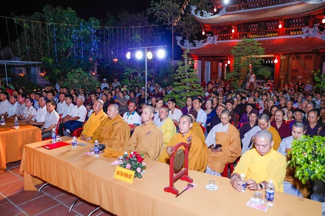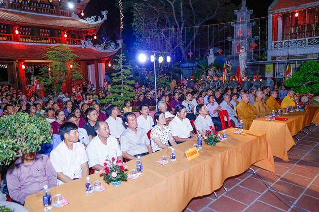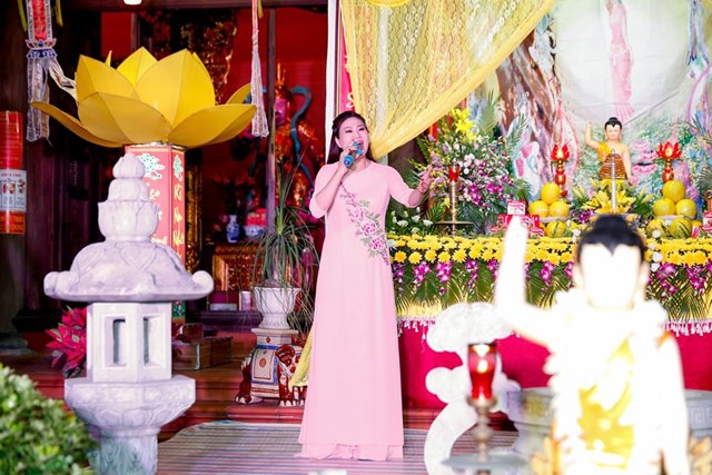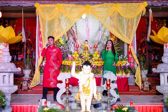 Trước khi buổi lễ được chính thức diễn ra là các tiết mục văn nghệ kính mừng đại lễ Phật đản do các nghệ sỹ đoàn ca múa Hải Phòn: NSƯT Khánh Hòa, NSƯT Đức Hoài, ca sỹ Viết Khanh, ca sỹ Đức Thịnh, ca sỹ Thanh Hậu, biên đạo múa Đặng Tiến Thuận…; nhà báo, PTV Đài truyền hình Hải Phòng: MC. Hồng Nhung. Chương trình văn nghệ còn có sự xuất hiện của Ca nương kỷ lục gia nhỏ tuổi nhất Việt Nam, á quân chương trình Biệt Tài Tí Hon: ĐặngTú Thanh. Về tham gia chương trình, các ca sỹ, văn nghệ sỹ đã trình bày các ca khúc ca ngợi công hạnh của Đức Thế Tôn, đồng thời cũng là tấm lòng thành kính để cúng dàng lên đức Từ Phụ nhân kỷ niệm 2641 năm ngày sinh của Ngài.