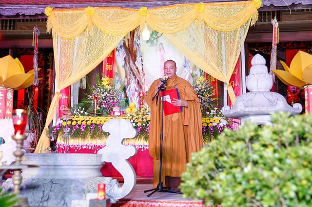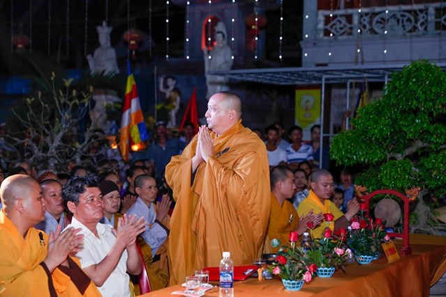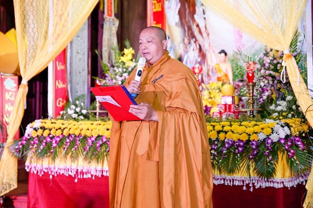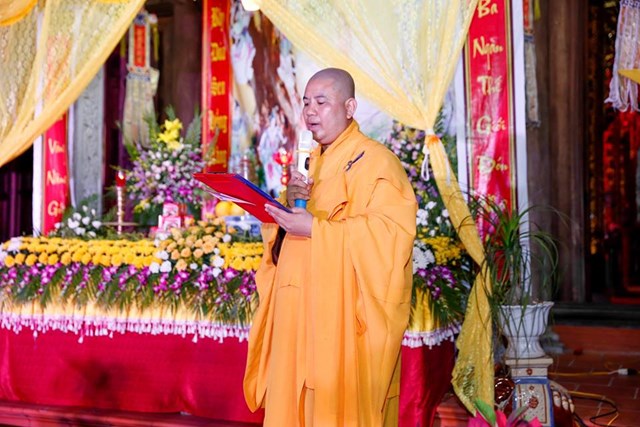 Sau nghi thức niệm Phật cầu gia bị, một phút nhập từ bi quán, tưởng nhớ đến lịch đại chư vị Tổ Sư, ĐĐ. Thích Quảng Minh – Trưởng BTS GHPGVN huyện Tiên Lãng đã lên cung tuyên Thông điệp Phật đản PL. 2561 – DL. 2017 của đức Pháp chủ GHPGVN gửi tăng ni Phật tử, đồng bào trong nước và nước ngoài nhân dịp đại lễ Phật đản. Toàn thể đại chúng đã trang nghiêm, thành kính đứng lên chắp tay đón nghe bức thông điệp đầy ý nghĩa của Hòa thượng chủ tịch Hội đồng chứng minh TƯ GHPGVN.