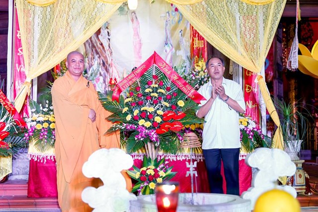 Nhân dịp này, Đại đức trụ trì đã vinh dự đón nhận những phần quà, những lẵng hoa tươi thắm chúc mừng của Ban trị sự huyện Tiên Lãng, chính quyền huyện Tiên Lãng, xã Bắc Hưng và các thôn trong xã sở nhân mùa Phật đản PL. 2561 – DL. 2017.
