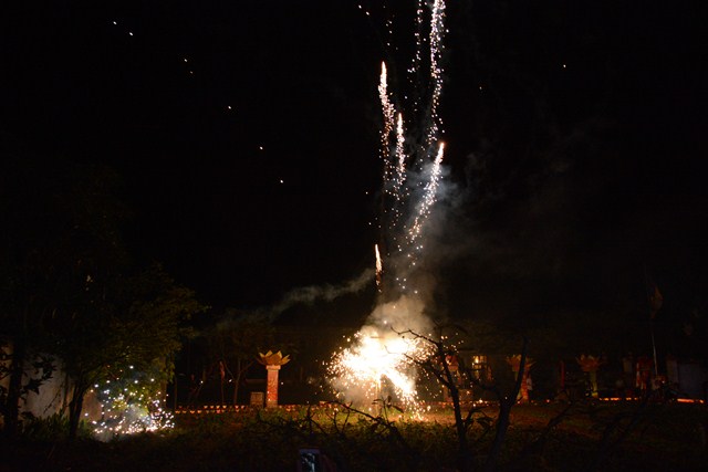 Kết thúc buổi lễ là màn bắn pháo bông mà bà con Phật tử, nhân dân địa phương rất mong đợi trong chương trình của đại lễ, màn trình diễn pháo bông do các nghệ nhân huyện Tiên Lãng bắn lên bầu trời mang theo thông điệp hòa bình trong suốt 15 phút liên tục để kính mừng Phật đản năm nay.