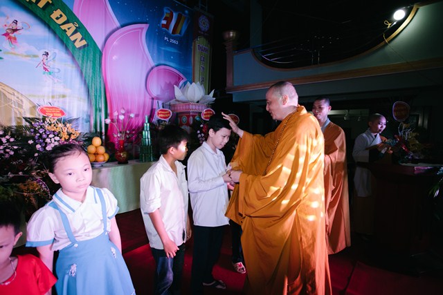 Sau nghi thức niệm Phật cầu gia bị, một phút nhập từ bi quán tưởng nhớ đến lịch đại chư vị Tổ Sư, ĐĐ. Thích Quảng Minh – Trưởng BTS GHPGVN huyện Tiên Lãng đã lên cung tuyên Thông điệp Phật đản PL. 2563 – DL. 2019 của Đức đệ tam Pháp chủ GHPGVN – Hòa thượng Thích Phổ Tuệ gửi tăng ni Phật trong nước và nước ngoài nhân đại lễ Phật đản. Toàn thể đại chúng đã chắp tay trang nghiêm, thành kính đón nghe bức thông điệp Phật đản đầy ý nghĩa của Hòa thượng Pháp chủ GHPGVN.