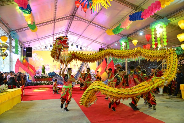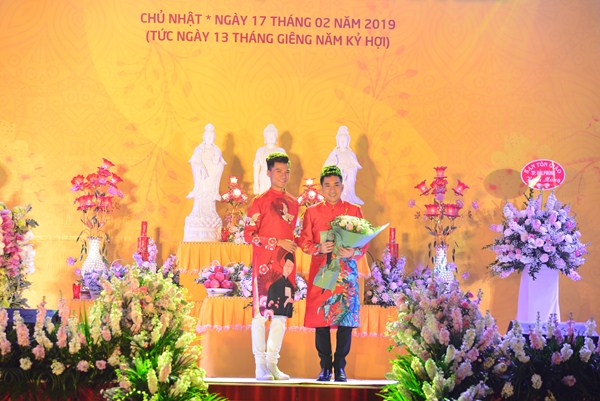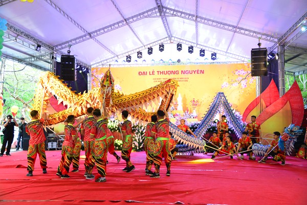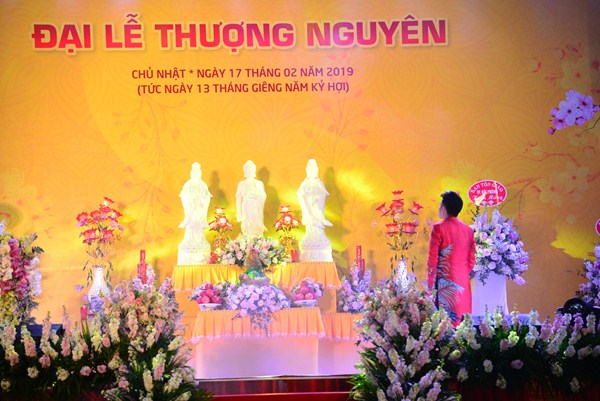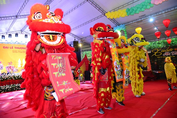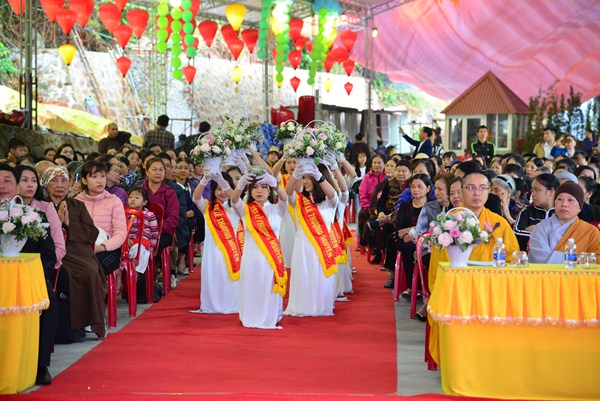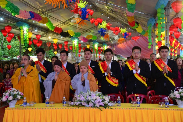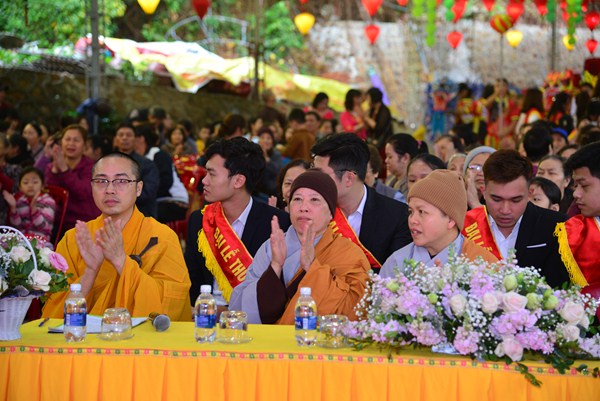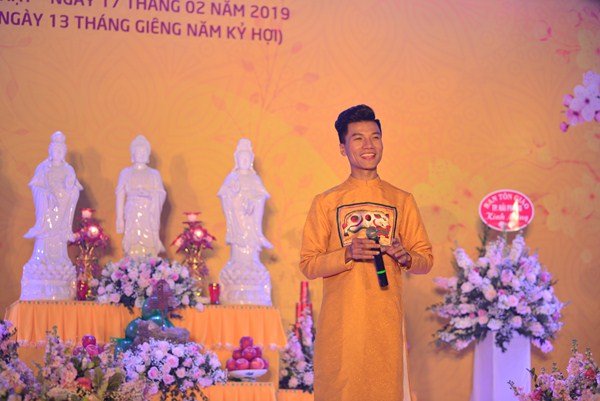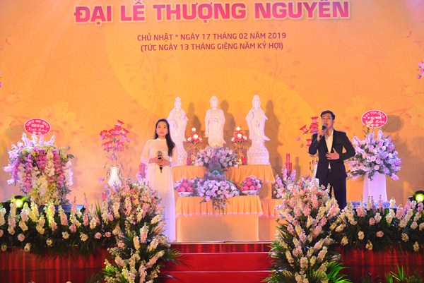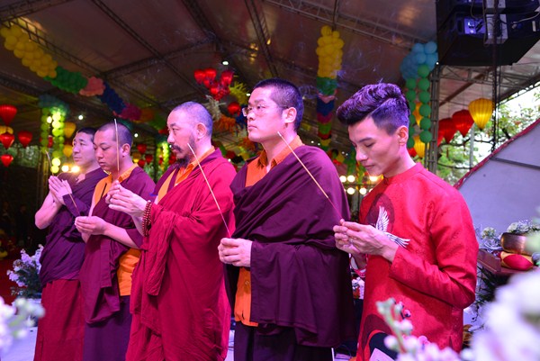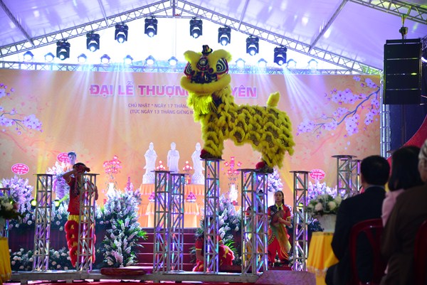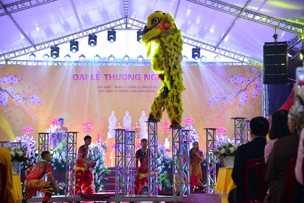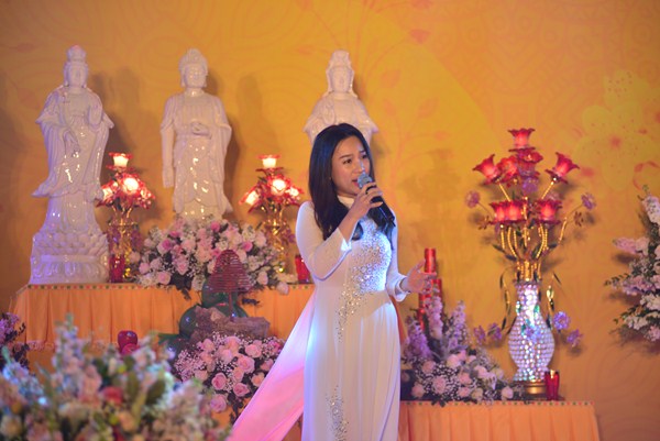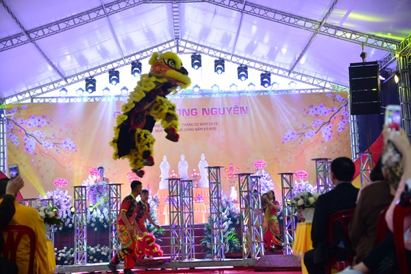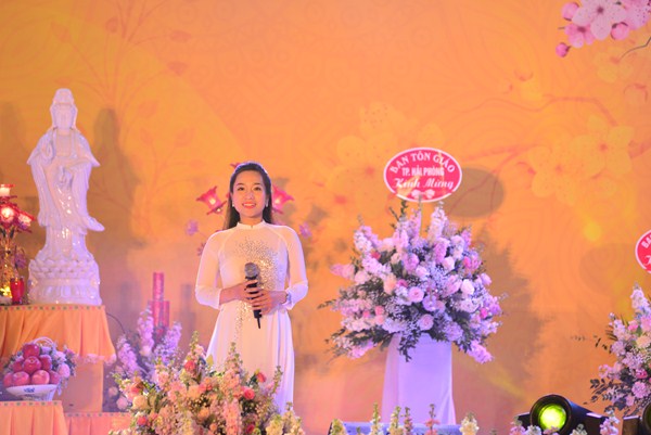 Trước khi chính thức diễn ra đại lễ, là các tiết mục văn nghệ do các văn nghệ sỹ đến từ TP.HCM và thành phố Hải Phòng trình bày: Ca sỹ Quang Hà, ca nhạc sỹ Quý Luân, ca nương trẻ tuổi nhất đạt kỷ lục gia Việt Nam Tú Thanh, các ca sỹ của đoàn ca múa Hải Phòng… Các ca sỹ đã thể hiện các ca khúc Phật giáo, các ca khúc ca ngợi công ơn cha mẹ, ca ngợi tình yêu quê hương Đất nước, ca ngợi mùa xuân… cúng dàng Tam Bảo nhân dịp đầu năm.