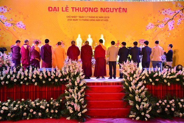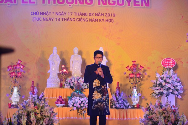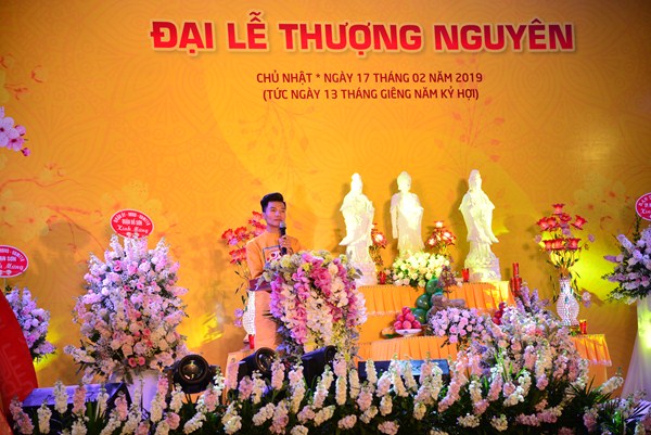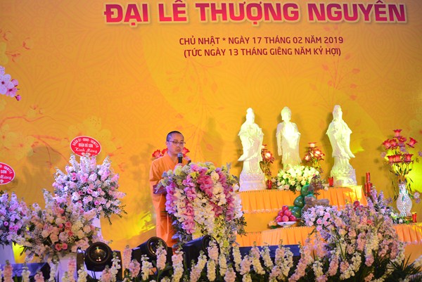 Thay mặt cho BTC đại lễ, Đại đức Thích Giác Hiệu – Phó BTC Đại lễ đã lên tuyên đọc Diễn văn khai mạc Đại lễ thượng nguyên PL. 2563 – DL. 2019 tại chùa Hang – Đồ Sơn, trong bài diễn văn khai mạc, Đại đức đã nhắc lại lịch sử của chùa Hang cũng như ý nghĩa, mục đích của việc tổ chức Đại lễ thượng nguyên hay còn gọi là tết Nguyên tiêu, cha ông ta đã có câu: “ Cúng quanh năm không bằng rằm tháng giêng”. Rằm tháng giêng là một ngày lễ rất quan trọng, là ngày đầu của lễ trường tịnh, nên việc tổ chức đại lễ thượng nguyên mang một ý nghĩa văn hóa, tâm linh rất to lớn với mục đích nguyện cầu Phật tổ gia hộ cho một năm mưa thuận gió hòa,vạn vật sinh sôi, cầu cho Đất nước thanh bình, nhân dân no ấm và an lạc.