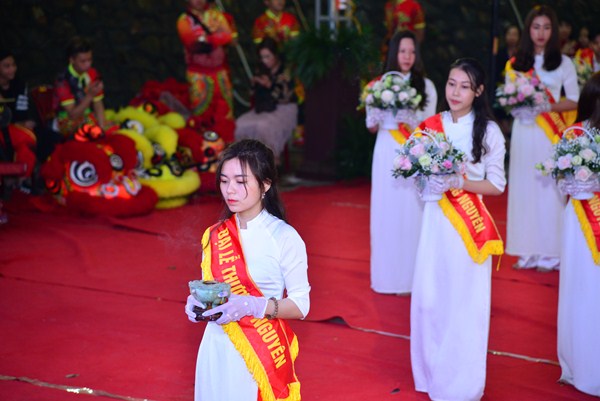 Tiết mục dâng hoa cúng dàng của các em TTNPT chùa Hang